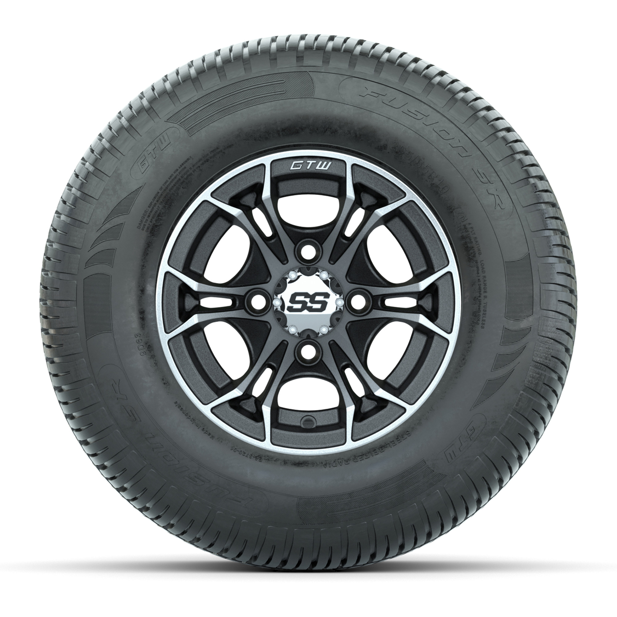 product GTW Spyder Machined/Matte Grey 10 in Wheels with 205/65-R10 Fusion SR Steel Belted Radial Tires – Full SetItem # A19-1129A set of (4) 10-inch GTW® Spyder Machined/Matte Grey golf cart wheels Mounted on 205/65-R10 Fusion SR Steel Belted Radial TiresTread Classification:Street / Golf CourseFull Tire & Wheel Combo Includes:(4) 10x7 GTW Spyder Wheels / Matte Grey finish with Machined Accents / Offset: 3:4 (ET -.25)(4) 205/65-R10 GTW Fusion SR Steel Belted Radial Tires / Tire is approx. 20” tall (4-Ply)(4) Center capsPlease Note: All Wheels are 4 on 4 Hole / Lug Pattern unless otherwise specified.Tech Tips:We Recommend a Minimum 3” Lift Kit for This Tire & Wheel Combo (Tire is approx. 20” OD)Please Check and Adjust PSI in Tires Before Operation (Recommended Inflation Can Be Found on Sidewall of Tire)Tire & Wheel Combos are mounted and Inflated Before Shipping, Free of ChargeAll Wheels Have a lug pattern of "4x101.6mm"Lug Nuts Sold Separately:Standard Chrome Lug Nuts #LUG4SMetric Chrome Lug Nuts #LUG4M (Yamaha Models) Find A Dealer