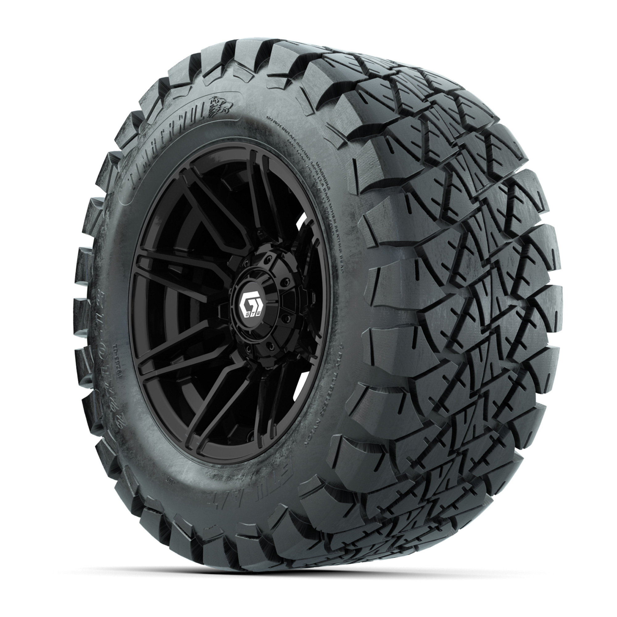 product GTW® Stealth Gloss Black 12 in Wheels with 22x10-12 Timberwolf All-Terrain Tires – Full SetItem # A19-1184Tread Classification:All-Terrain/Off-RoadFull kit includes:(4) 12” GTW® Stealth Wheels / Gloss Black Finish / Offset: 3:4 (ET -.25)(4) 22x10-12 GTW Timberwolf A/T Tires / Tire is approx. 22” tall (4-Ply)(4) Color match capsLug nuts sold separatelyPlease Note: All Wheels are 4 on 4 Hole / Lug Pattern (4x101.6mm) unless otherwise specified.Tech Tips:We Recommend a Lift Kit for This Tire & Wheel KitTire & Wheel Combos are mounted and Inflated Before Shipping, Free of ChargePlease Check and Adjust PSI in Tires Before Operation (Recommended Inflation Can Be Found on Sidewall of Tire)All Wheels Have a lug pattern of "4x101.6mm"Lug Nuts Sold Separately:Standard: #LUG4S (Standard Chrome Lug Nuts) Metric: #LUG4M (Yamaha Models) Find A Dealer