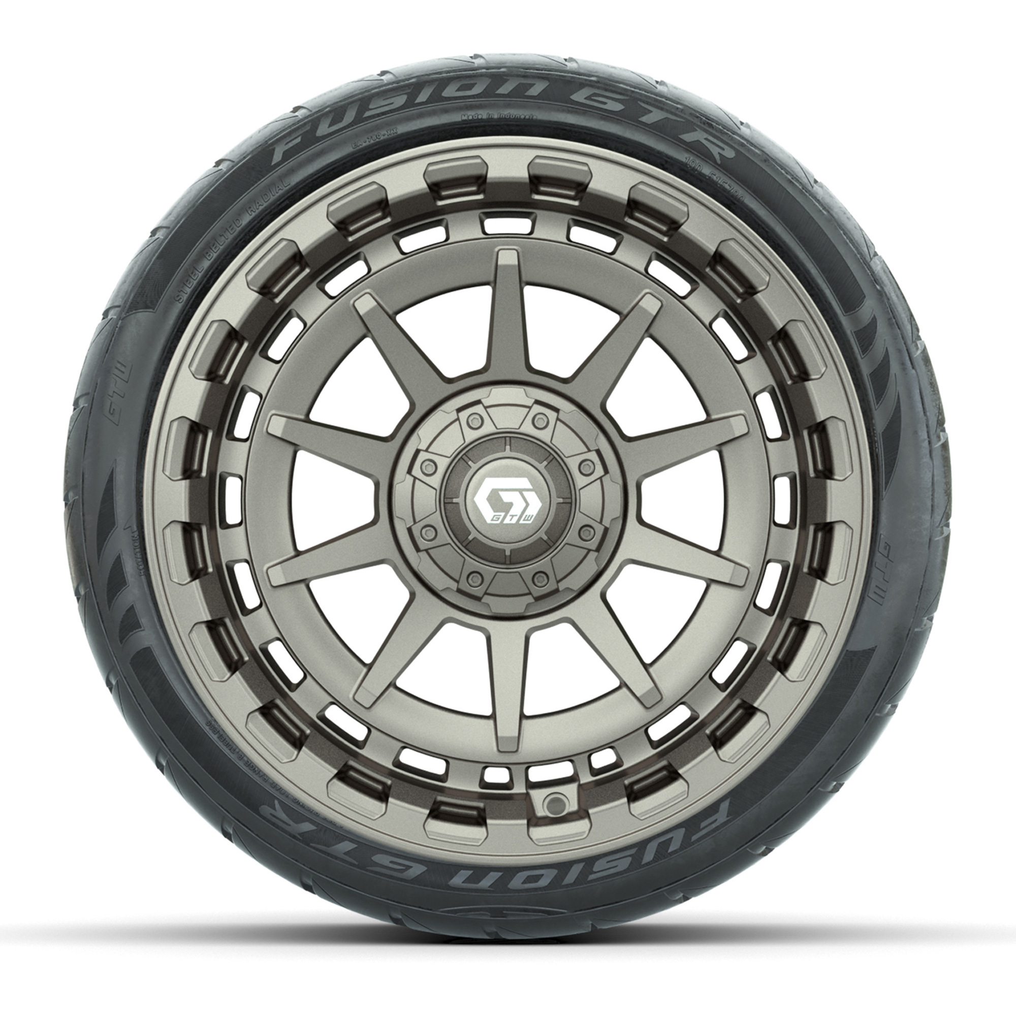 product GTW® Barricade Satin Bronze 15 in Wheels with 215/40-R15 Fusion GTR Steel Belted Street Tires – Full SetItem # A19-1266Tread Classification:Street/CourseFull kit includes:(4) 15” GTW® Barricade Wheels / Satin Bronze Finish / Offset: 3:4 (ET -.25)(4) 215/40-R15 GTW® Fusion GTR Steel Belted Street Tires / Tire is approx. 21” tall (4-Ply)(4) Color match capsLug nuts sold separatelyPlease Note: All Wheels are 4 on 4 Hole / Lug Pattern (4x101.6mm) unless otherwise specified.Tech Tips:We Recommend a Lift Kit for This Tire & Wheel KitTire & Wheel Combos are mounted and Inflated Before Shipping, Free of ChargePlease Check and Adjust PSI in Tires Before Operation (Recommended Inflation Can Be Found on Sidewall of Tire)All Wheels Have a lug pattern of "4x101.6mm"Lug Nuts Sold Separately:Standard: #LUG4S (Standard Chrome Lug Nuts) Metric: #LUG4M (Yamaha Models) Find A Dealer