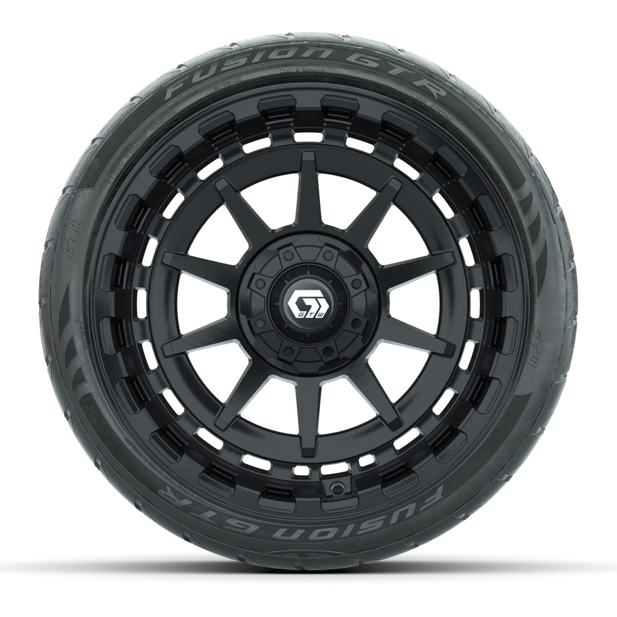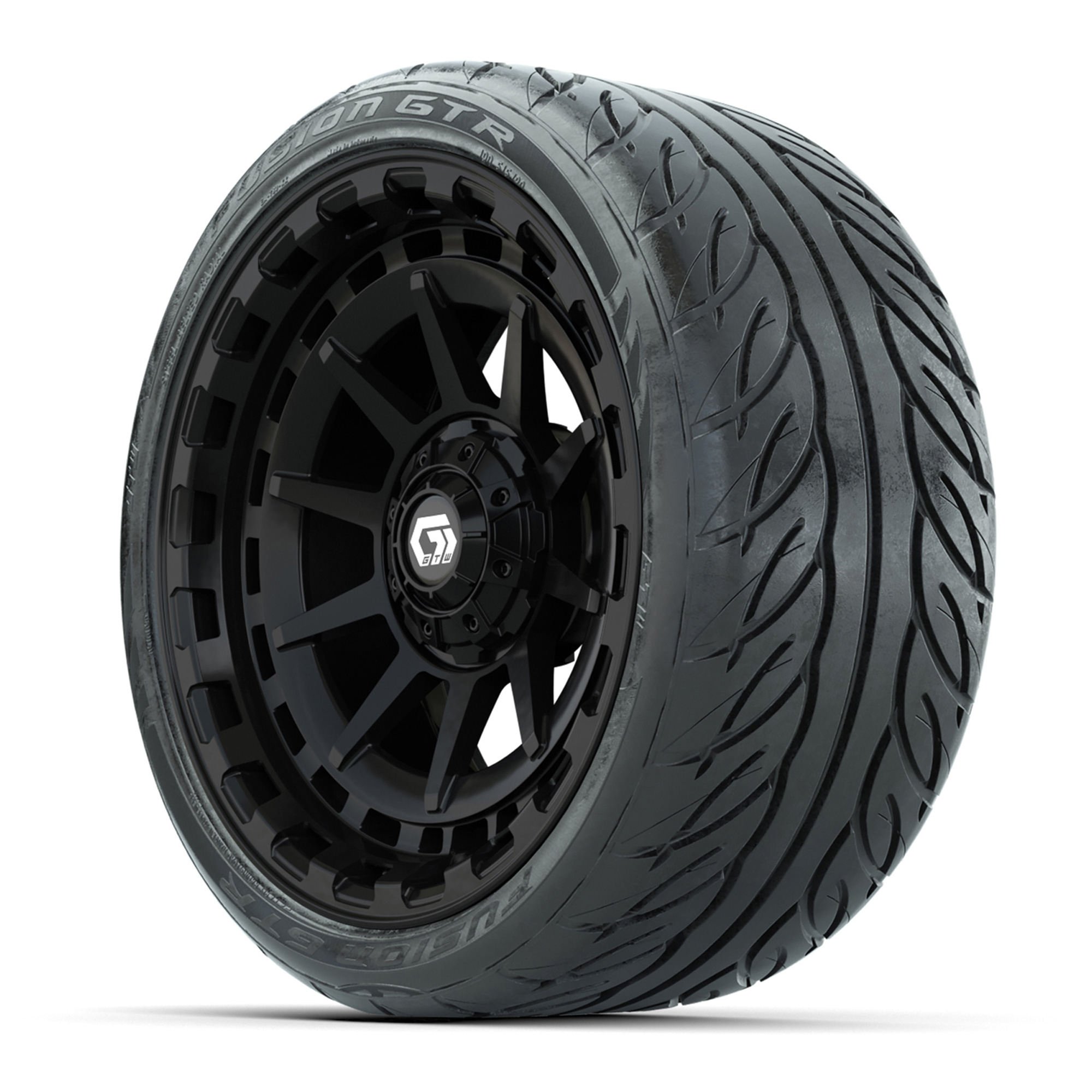 product GTW® Barricade Gloss Black 15 in Wheels with 215/40-R15 Fusion GTR Steel Belted Street Tires – Full SetItem # A19-1268Tread Classification:Street/CourseFull kit includes:(4) 15” GTW® Barricade Wheels / Gloss Black Finish / Offset: 3:4 (ET -.25)(4) 215/40-R15 GTW® Fusion GTR Steel Belted Street Tires / Tire is approx. 21” tall (4-Ply)(4) Color match capsLug nuts sold separatelyPlease Note: All Wheels are 4 on 4 Hole / Lug Pattern (4x101.6mm) unless otherwise specified.Tech Tips:We Recommend a Lift Kit for This Tire & Wheel KitTire & Wheel Combos are mounted and Inflated Before Shipping, Free of ChargePlease Check and Adjust PSI in Tires Before Operation (Recommended Inflation Can Be Found on Sidewall of Tire)All Wheels Have a lug pattern of "4x101.6mm"Lug Nuts Sold Separately:Standard: #LUG4S (Standard Chrome Lug Nuts) Metric: #LUG4M (Yamaha Models) Find A Dealer