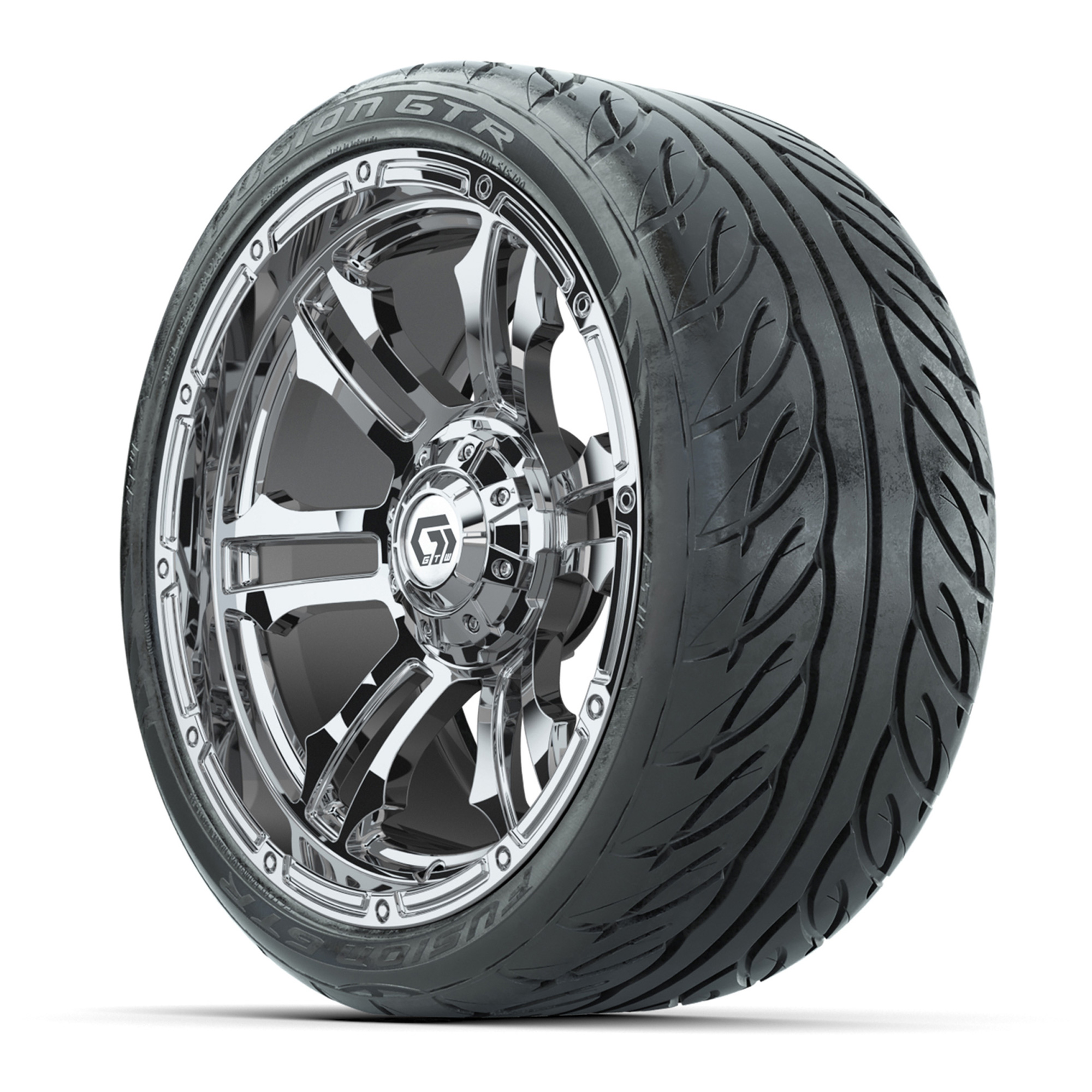 product GTW® Shogun Chrome 15 in Wheels with 215/40-R15 Fusion GTR Steel Belted Street Tires – Full SetItem # A19-1274Tread Classification:Street/CourseFull kit includes:(4) 15” GTW® Shogun Wheels / Chrome Finish / Offset: 3:4 (ET -.25)(4) 215/40-R15 GTW® Fusion GTR Steel Belted Street Tires / Tire is approx. 21” tall (4-Ply)(4) Color match capsLug nuts sold separatelyPlease Note: All Wheels are 4 on 4 Hole / Lug Pattern (4x101.6mm) unless otherwise specified.Tech Tips:We Recommend a Lift Kit for This Tire & Wheel KitTire & Wheel Combos are mounted and Inflated Before Shipping, Free of ChargePlease Check and Adjust PSI in Tires Before Operation (Recommended Inflation Can Be Found on Sidewall of Tire)All Wheels Have a lug pattern of "4x101.6mm"Lug Nuts Sold Separately:Standard: #LUG4S (Standard Chrome Lug Nuts) Metric: #LUG4M (Yamaha Models) Find A Dealer