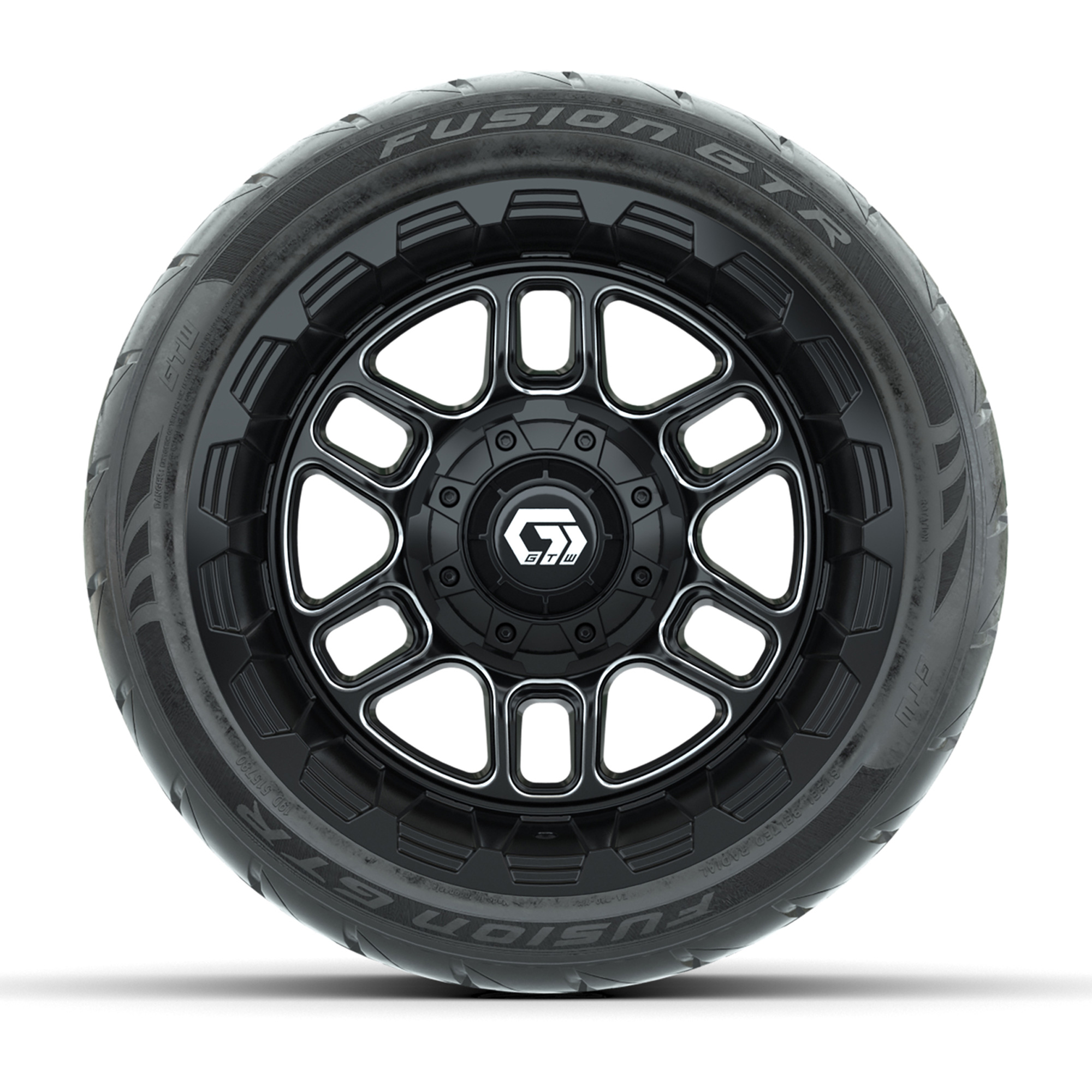 product GTW® Titan Black/Machined 12 in Wheels with 215/40-R12 Fusion GTR Steel Belt Radial Street Tires – Full SetItem # A19-1746T&W Assy Set (4), 19-344 WHEEL/20-053 TIRE Find A Dealer