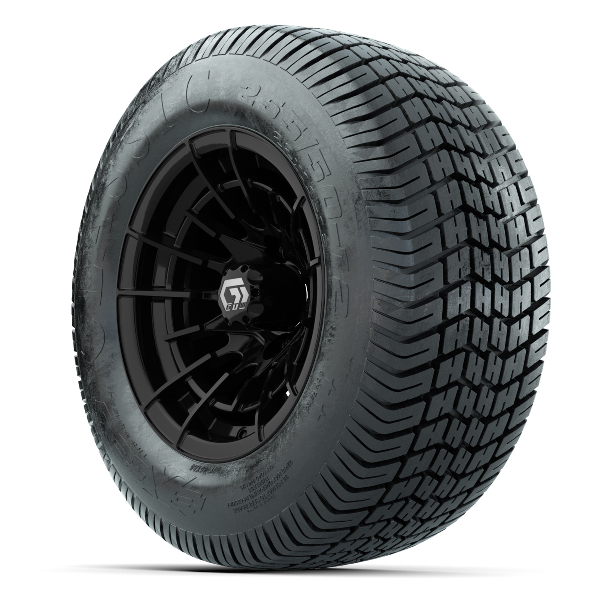 product GTW® Boost Gloss Black 12 in Wheels with 255/50-12 Excel Classic Street Tires – Full SetItem # A19-1838A set of (4) 12-inch GTW® Boost Gloss Black golf cart wheels mounted on 255/50-12 Excel Classic Street TiresTread Classification:Street/CourseFull kit includes:(4) 12” GTW® Boost Wheels / Gloss Black Finish / Offset: 3:4 (ET -.25)(4) 255/50-12 Excel Classic Street Tires / Tire is approx. 23” tall (4-Ply)(4) Color match capsLug nuts sold separatelyPlease Note: All Wheels are 4 on 4 Hole / Lug Pattern (4x101.6mm) unless otherwise specified.Tech Tips:We Recommend a Lift Kit for This Tire & Wheel KitTire & Wheel Combos are mounted and Inflated Before Shipping, Free of ChargePlease Check and Adjust PSI in Tires Before Operation (Recommended Inflation Can Be Found on Sidewall of Tire)All Wheels Have a lug pattern of "4x101.6mm"Lug Nuts Sold Separately:Standard: #LUG4S (Standard Chrome Lug Nuts) Metric: #LUG4M (Yamaha Models) Find A Dealer