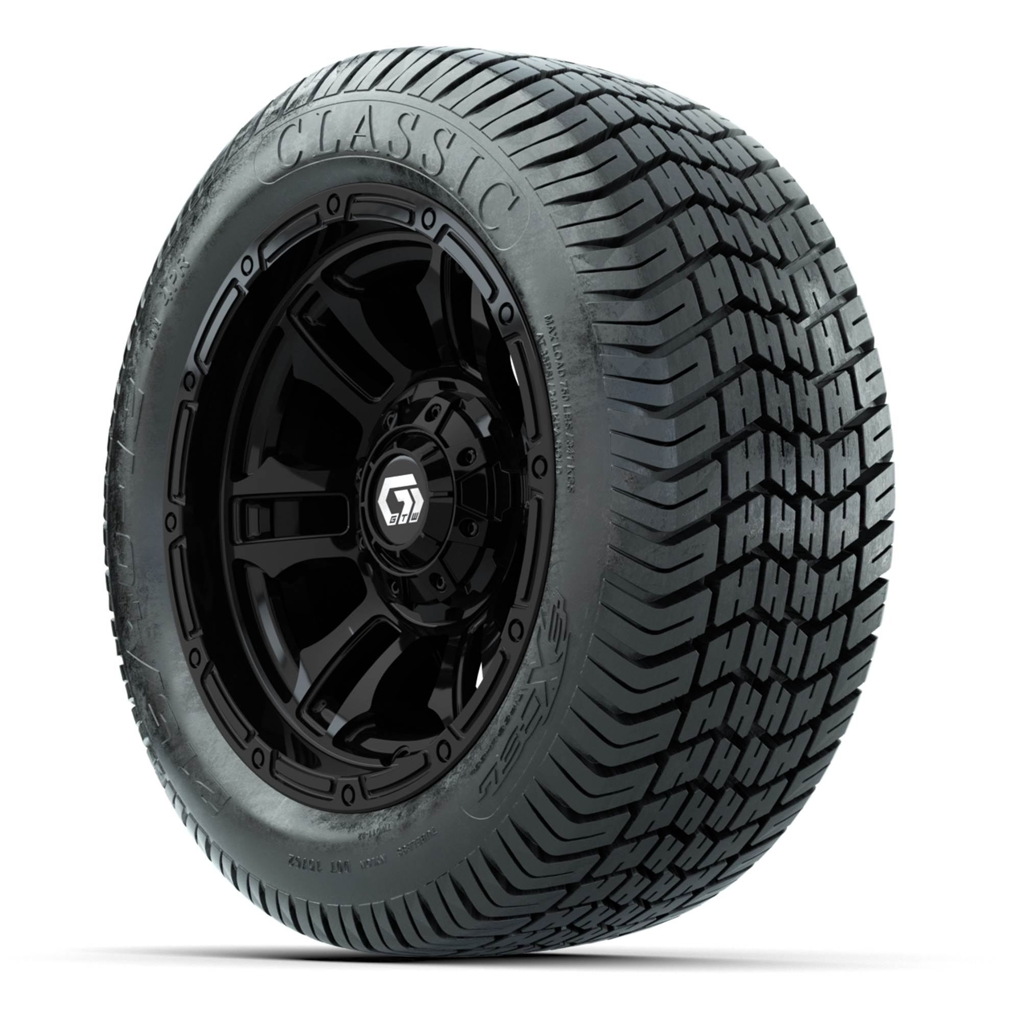 product GTW® Shogun Gloss Black 12 in Wheels with 215/40-12 Excel Classic Street Tires – Full SetItem # A19-1887A set of (4) 12-inch GTW® Shogun Gloss Black golf cart wheels mounted on 215/40-12 Excel Classic Street TiresTread Classification:Street/CourseFull kit includes:(4) 12” GTW® Shogun Wheels / Gloss Black Finish / Offset: 3:4 (ET -.25)(4) 215/40-12 Excel Classic Street Tires / Tire is approx. 19” tall (4-Ply)(4) Color match capsLug nuts sold separatelyPlease Note: All Wheels are 4 on 4 Hole / Lug Pattern (4x101.6mm) unless otherwise specified.Tech Tips:This Tire & Wheel Combo Does not require a lift kitTire & Wheel Combos are mounted and Inflated Before Shipping, Free of ChargePlease Check and Adjust PSI in Tires Before Operation (Recommended Inflation Can Be Found on Sidewall of Tire)All Wheels Have a lug pattern of "4x101.6mm"Lug Nuts Sold Separately:Standard: #LUG4S (Standard Chrome Lug Nuts) Metric: #LUG4M (Yamaha Models) Find A Dealer