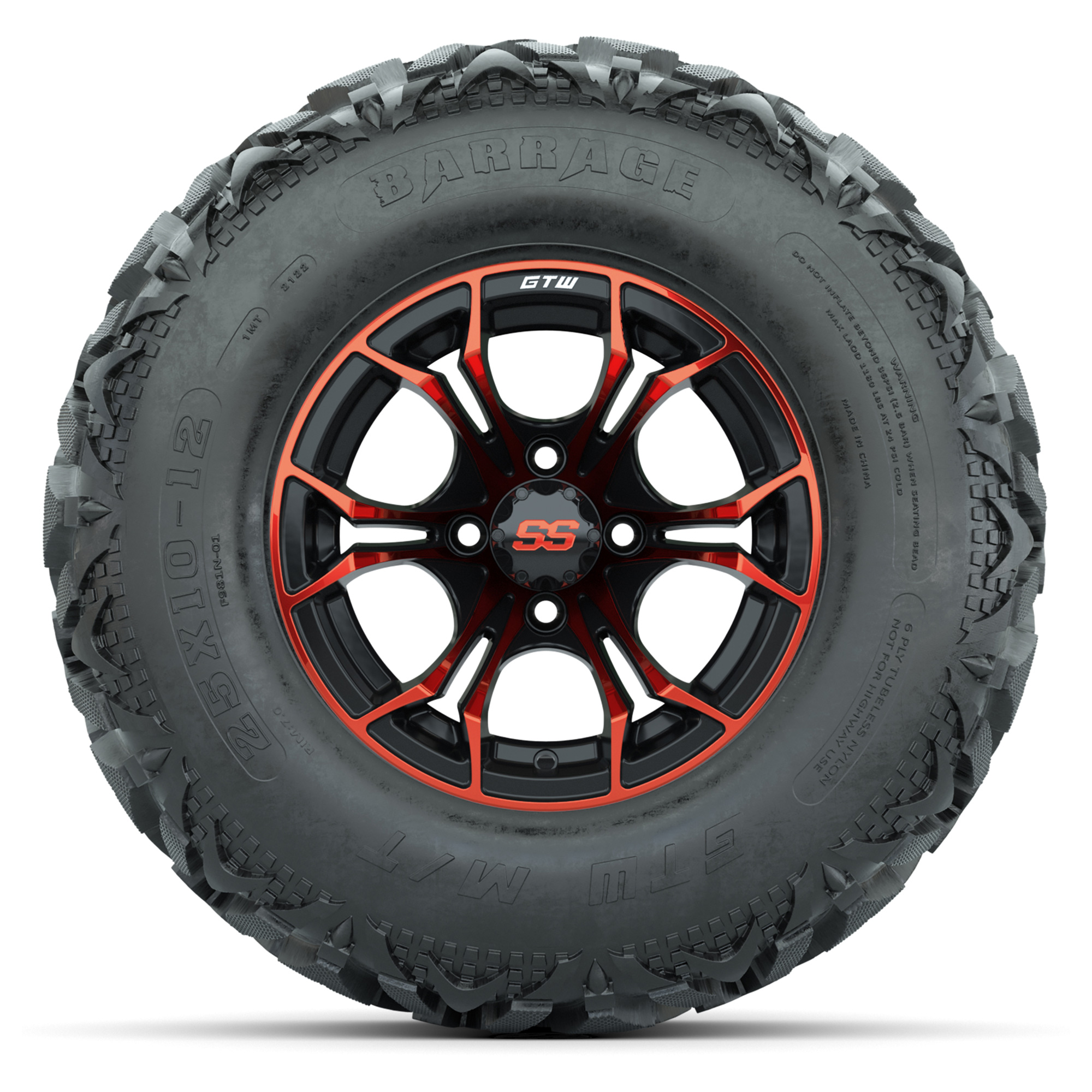 GTW® Spyder Black/Red 12 in Wheels with 25X10-12 Barrage Mud Tires – Full Set