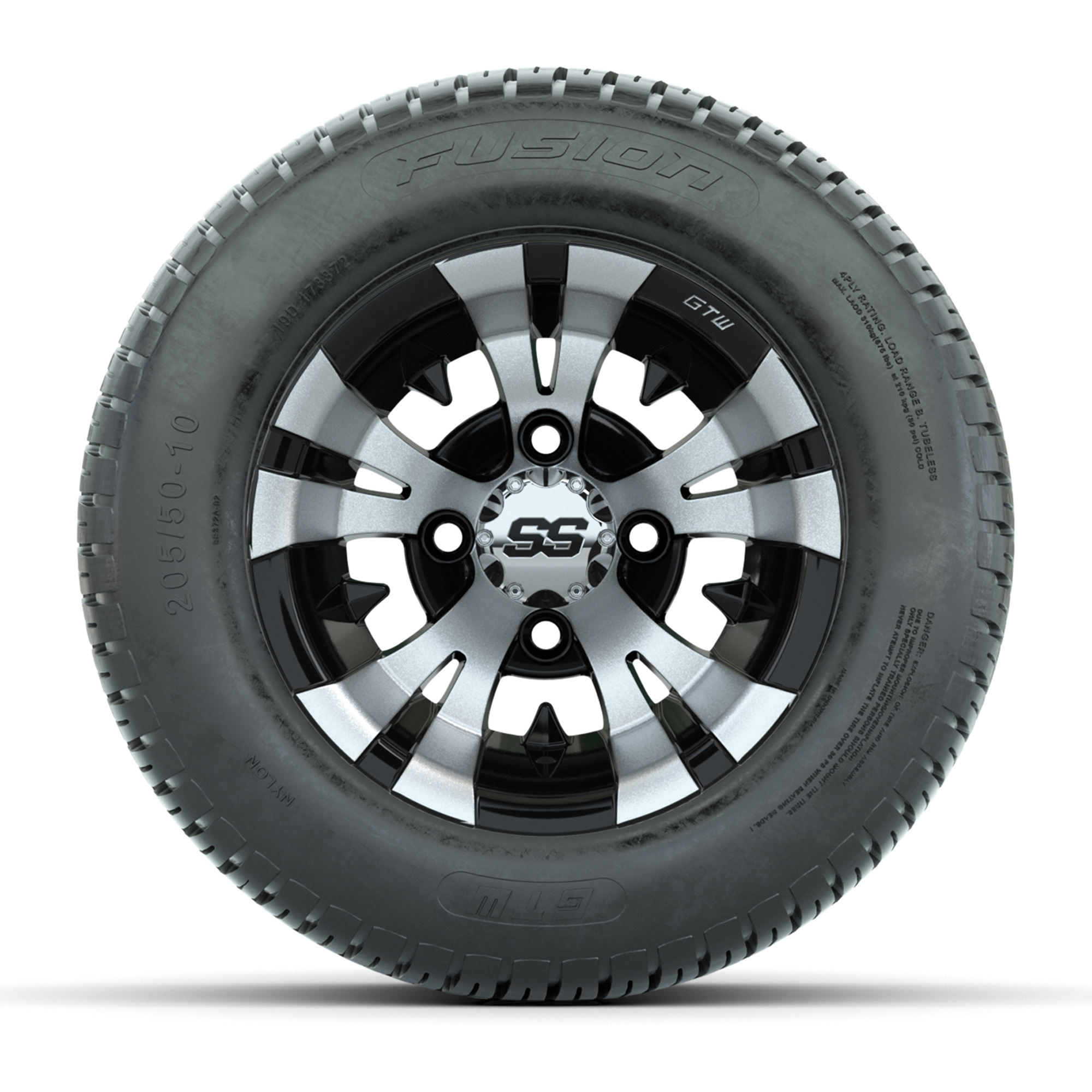 GTW Vampire Black and Machined 10 in Wheels with 18in Fusion Street Tires – Set of 4