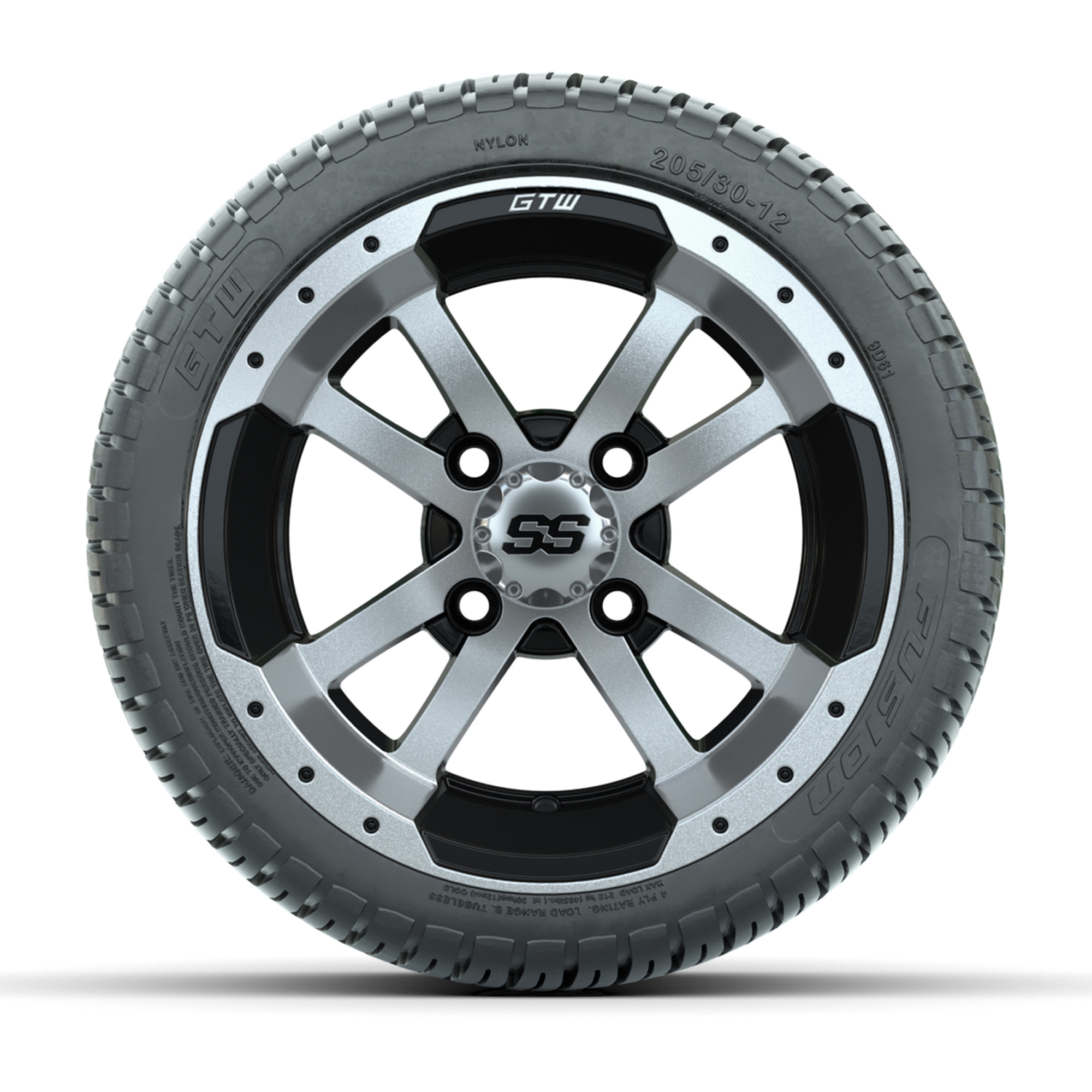 GTW Storm Trooper Black and Machined 12 in Wheels with 18in Fusion Street Tires – Set of 4
