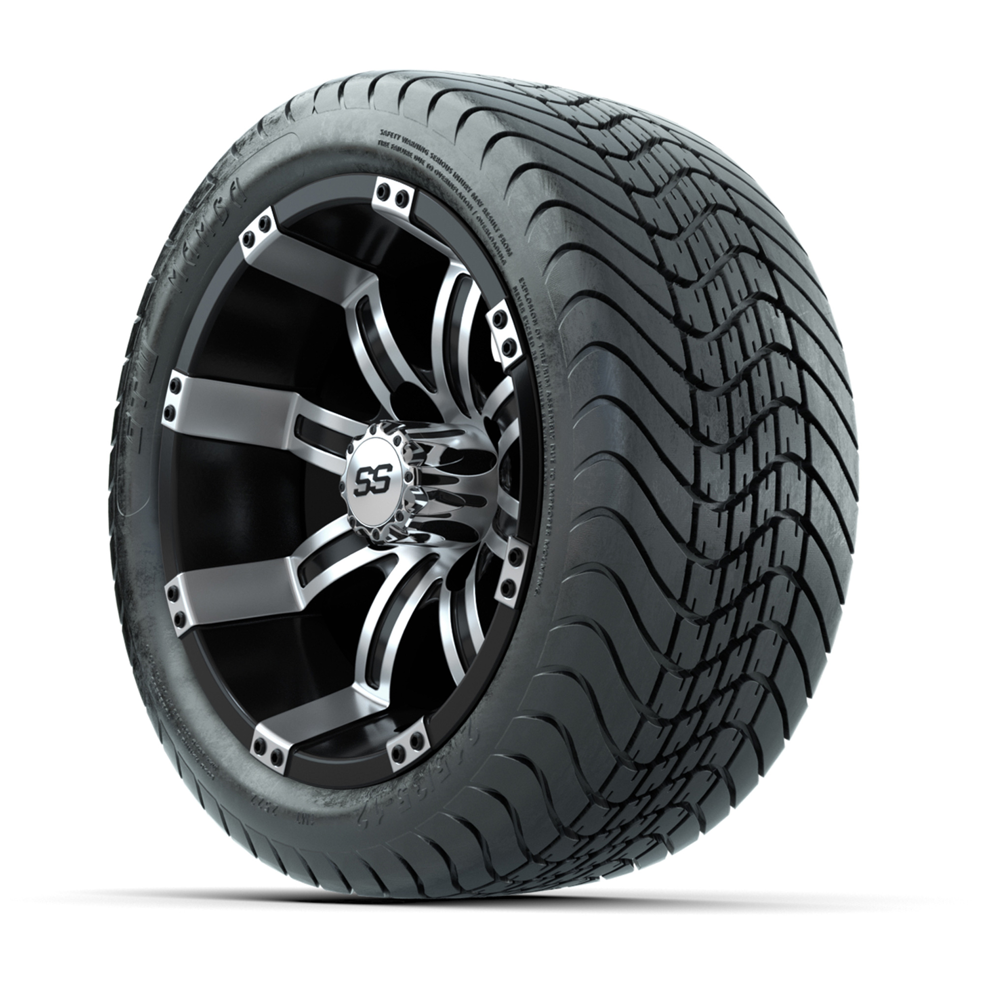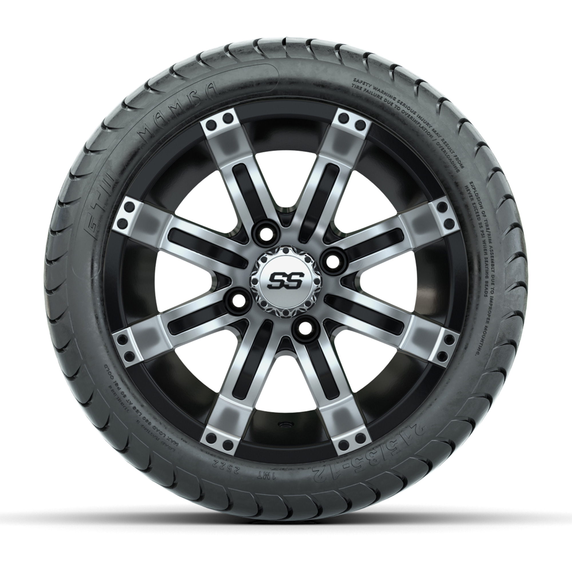 GTW Tempest Black and Machined 12 in Wheels with 18in Mamba Street Tires – Set of 4