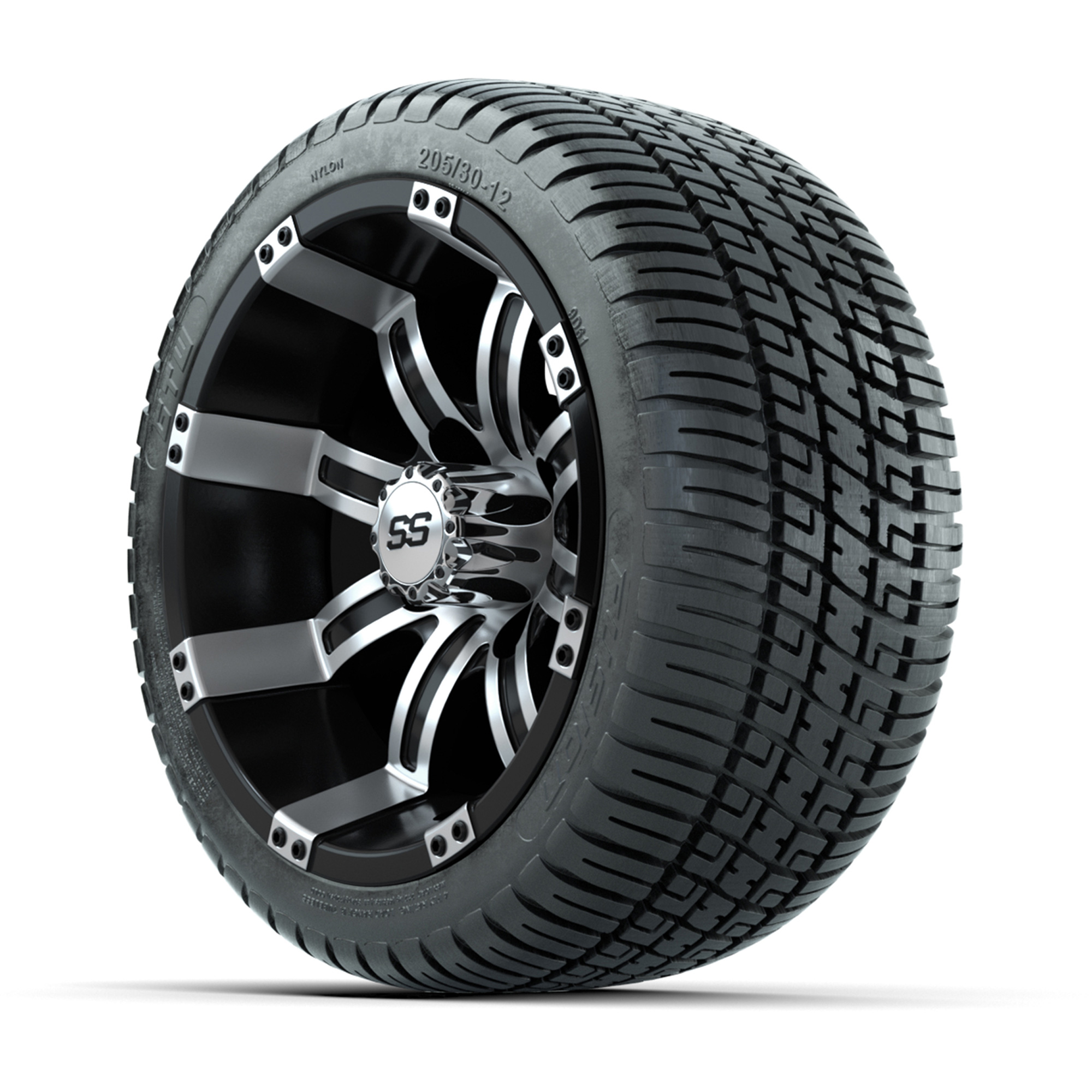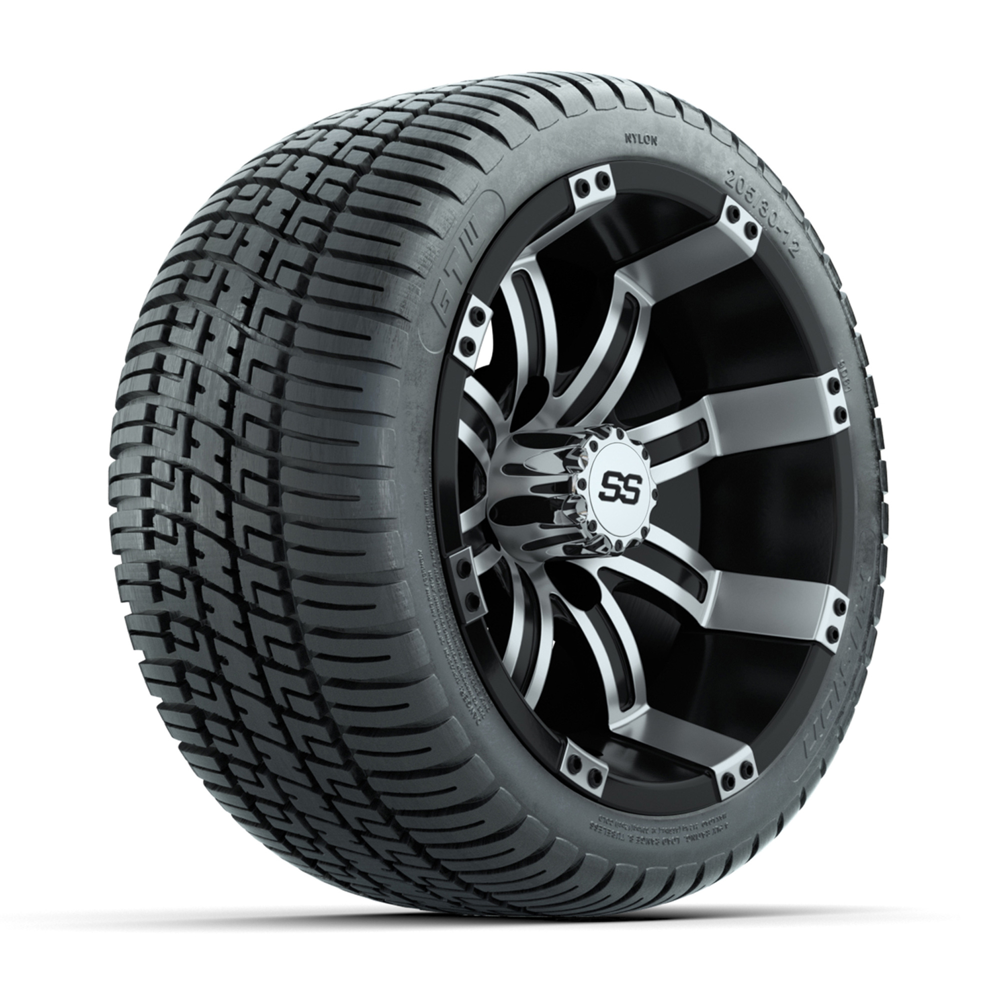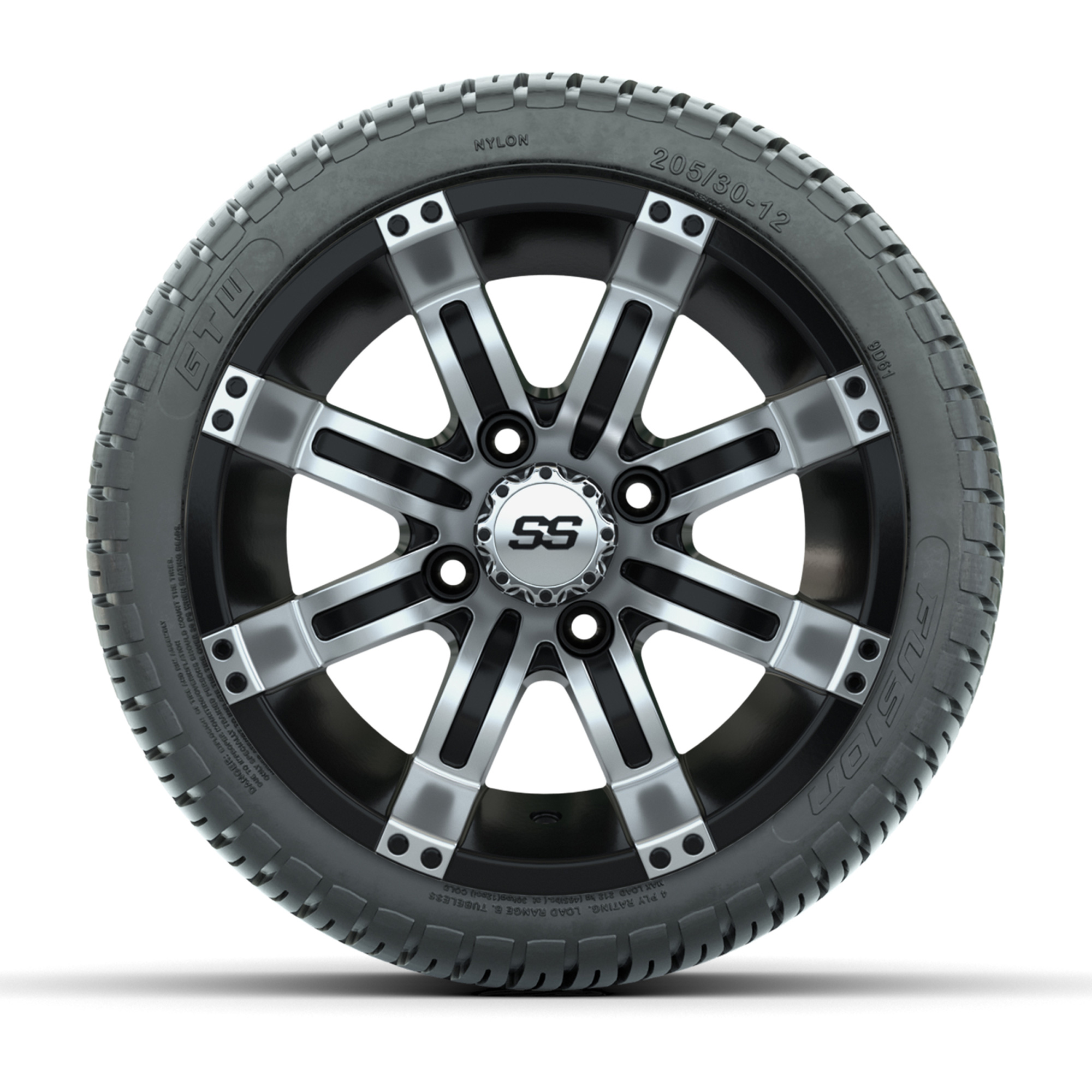 GTW Tempest Black and Machined 12 in Wheels with 18in Fusion Street Tires – Set of 4