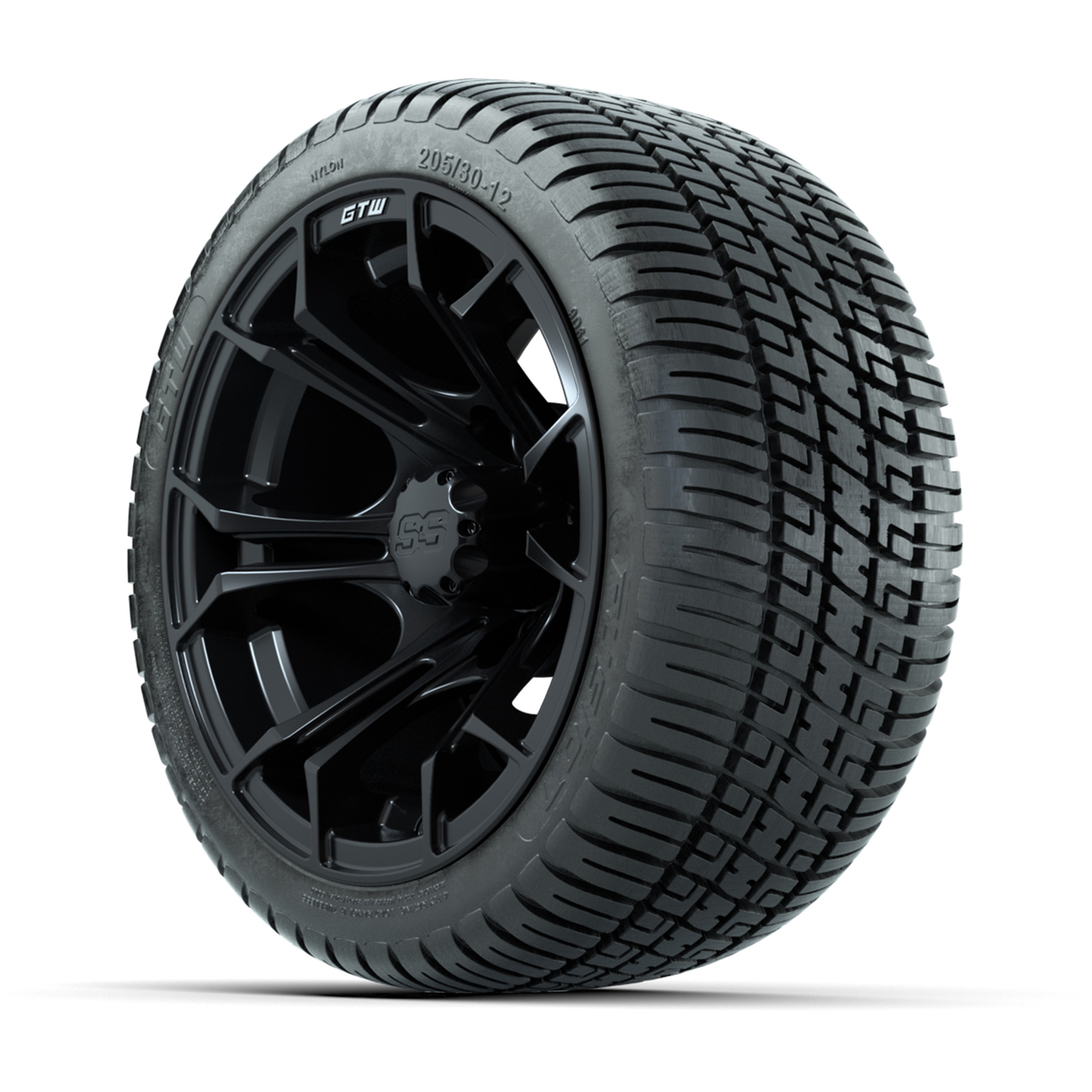 GTW Spyder Matte Black 12 in Wheels with 18in Fusion Street Tires – Set of 4