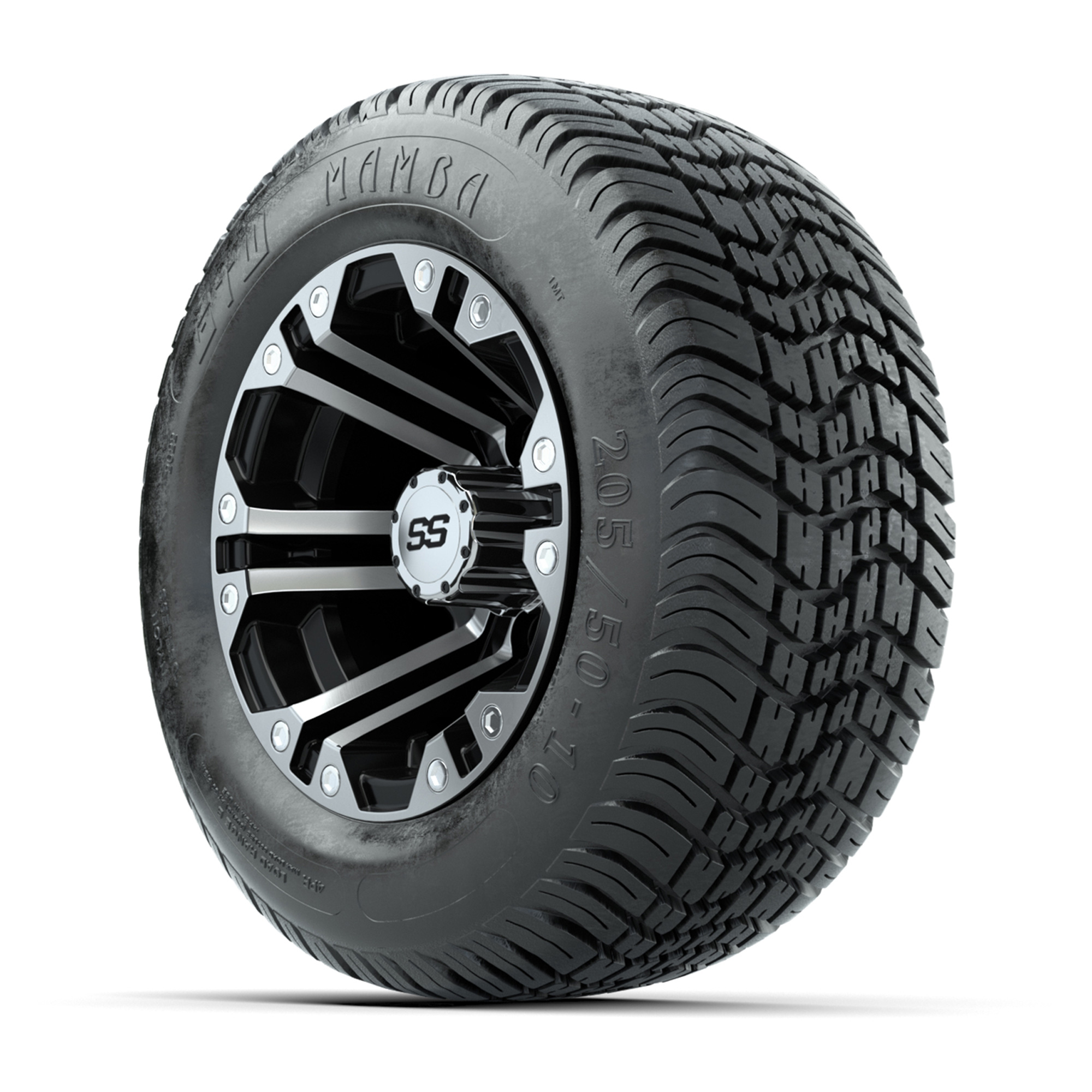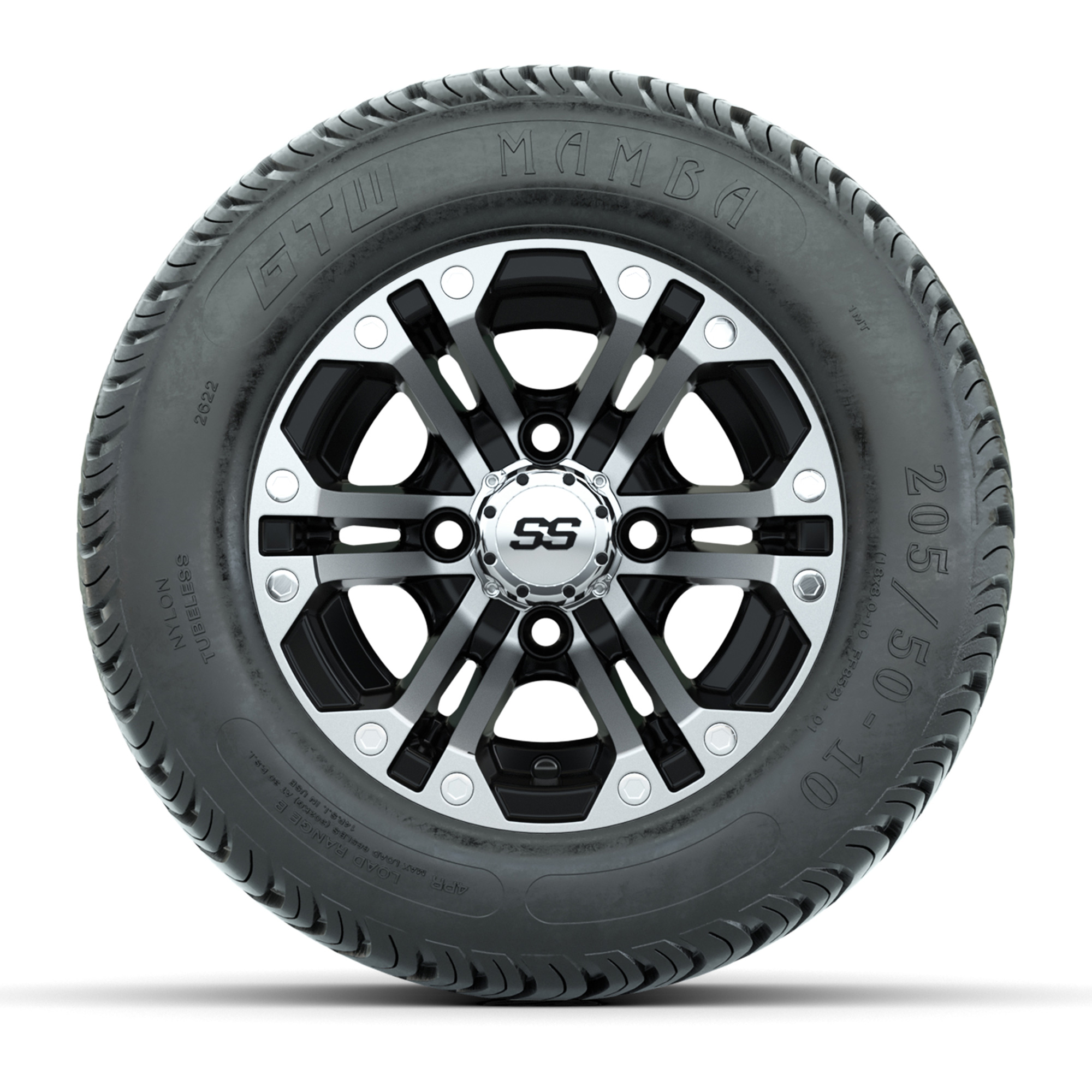 product Set of (4) 10 in GTW Specter Wheels with 205/50-10 Mamba Street TiresItem # A19-448Tread Classification:Street/Turf/CourseFull kit includes:(4) 10x7 GTW Specter Wheels / Machined & Black Finish / Offset: 3:4 (ET -.25)(4) 205/50-10 GTW Mamba Street Tires / Tire is approx. 18” tall (4-Ply)(4) Center CapsPlease Note: All Wheels are 4 on 4 Hole / Lug Pattern unless otherwise specified.Tech Tips:This Tire & Wheel Combo Does Not Require a Lift KitTire & Wheel Combos are mounted and Inflated Before Shipping, Free of ChargePlease Check and Adjust PSI in Tires Before Operation (Recommended Inflation Can Be Found on Sidewall of Tire)All Wheels Have a lug pattern of "4x101.6mm"Lug Nuts Sold Separately:Standard: #LUG4S (Standard Chrome Lug Nuts) Metric: #LUG4M (Yamaha Models) Find A Dealer