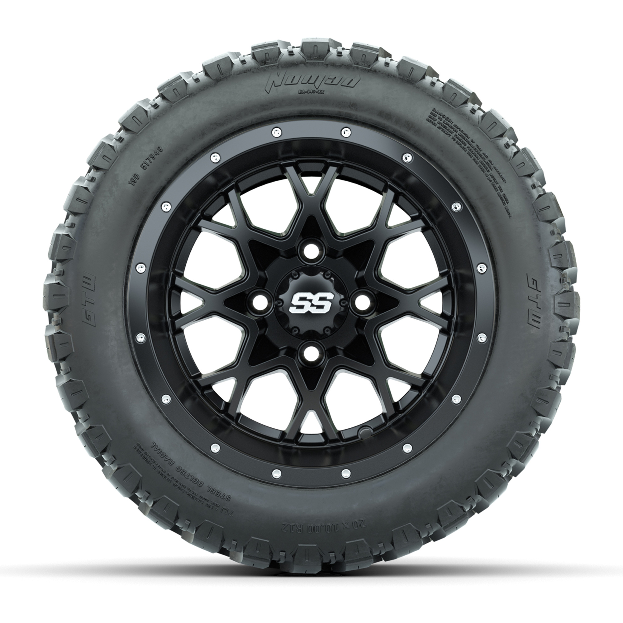 product Set of (4) 12 in GTW Vortex Wheels with 20x10-R12 GTW Nomad All-Terrain TiresItem # A19-465Tread Classification:All Terrain / Off RoadFull kit includes:(4) 12" GTW Vortex Wheels / Matte Black Finish(4) 20x10-R12 GTW Nomad All-Terrain Tires / Steel Belted (4-Ply)(4) Center capsPlease Note: All Wheels are 4 on 4 Hole / Lug Pattern unless otherwise specified.Tech Tips:This Tire & Wheel Combo Does Not Require a Lift Kit (But is recommended for clearance issues)Tire & Wheel Combos are mounted and Inflated Before Shipping, Free of ChargePlease Check and Adjust PSI in Tires Before Operation (Recommended Inflation Can Be Found on Sidewall of Tire)All Wheels Have a lug pattern of "4x101.6mm"Lug Nuts Sold Separately:Standard: #LUG4S (Standard Chrome Lug Nuts) Metric: #LUG4M (Yamaha Models) Find A Dealer