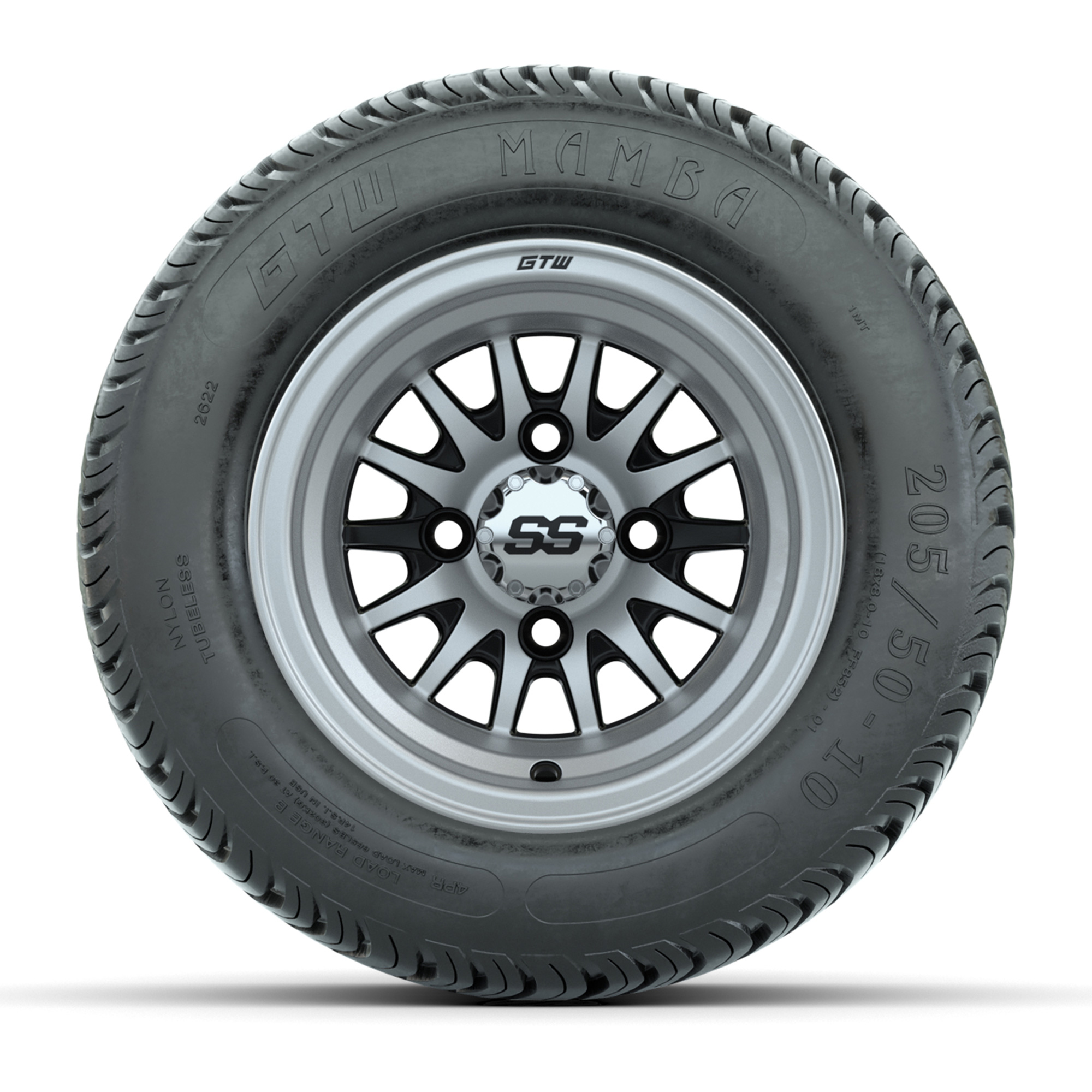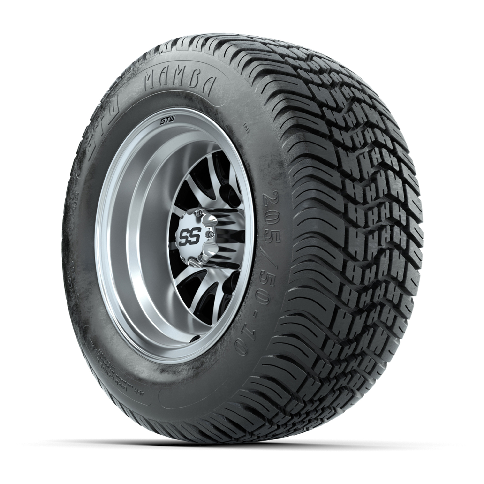 product Set of (4) 10 in GTW Medusa Wheels with 205/50-10 Mamba Street TiresItem # A19-567Tread Classification:Street/Turf/CourseFull kit includes:(4) 10x7 GTW Medusa Wheels / Machined & Black Finish / Offset: 3:4 (ET -.25)(4) 205/50-10 GTW Mamba Street Tires / Tire is approx. 18” tall (4-Ply)(4) Center CapsPlease Note: All Wheels are 4 on 4 Hole / Lug Pattern unless otherwise specified.Tech Tips:This Tire & Wheel Combo Does Not Require a Lift KitTire & Wheel Combos are mounted and Inflated Before Shipping, Free of ChargePlease Check and Adjust PSI in Tires Before Operation (Recommended Inflation Can Be Found on Sidewall of Tire)All Wheels Have a lug pattern of "4x101.6mm"Lug Nuts Sold Separately:Standard: #LUG4S (Standard Chrome Lug Nuts) Metric: #LUG4M (Yamaha Models) Find A Dealer