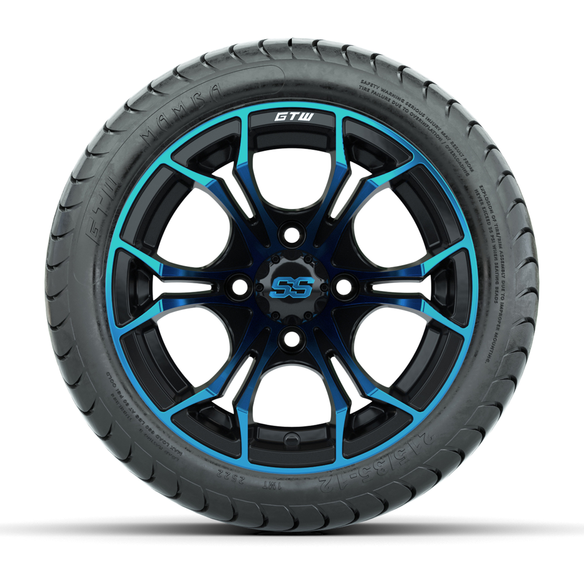GTW Spyder Blue/Black 12 in Wheels with 215/35-12 GTW Mamba Street Tires – Full Set