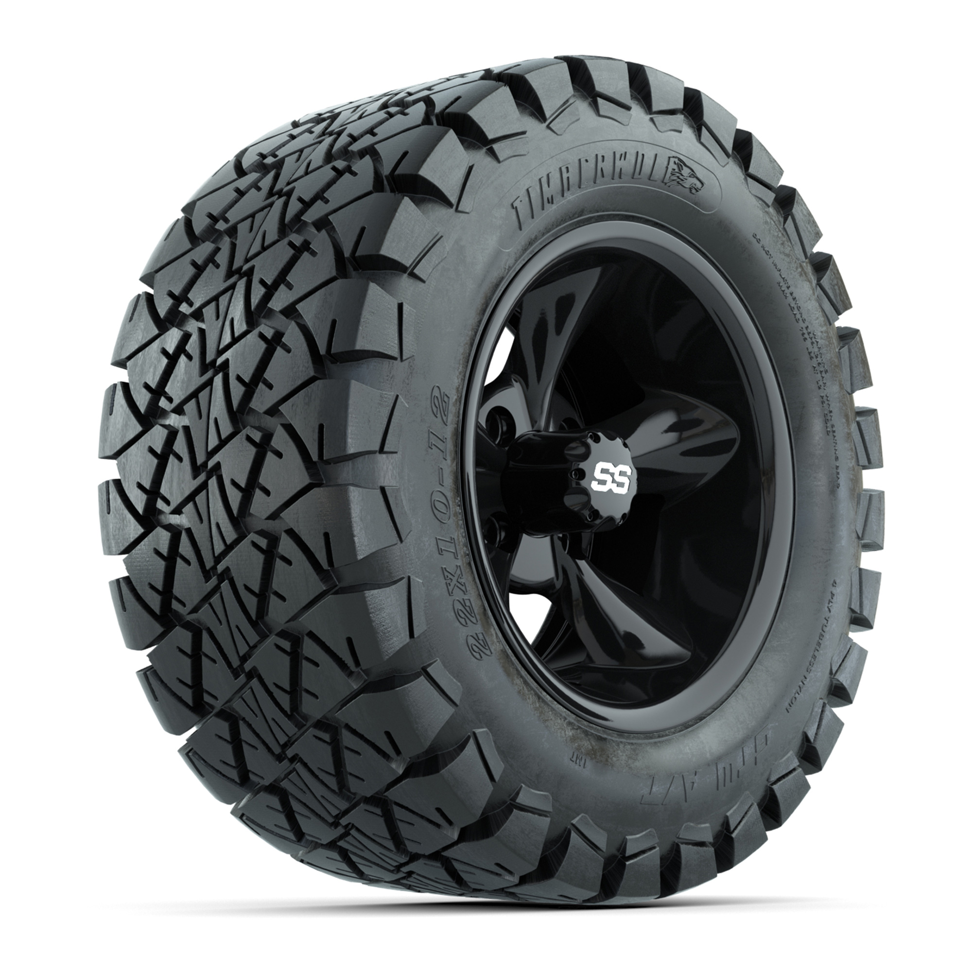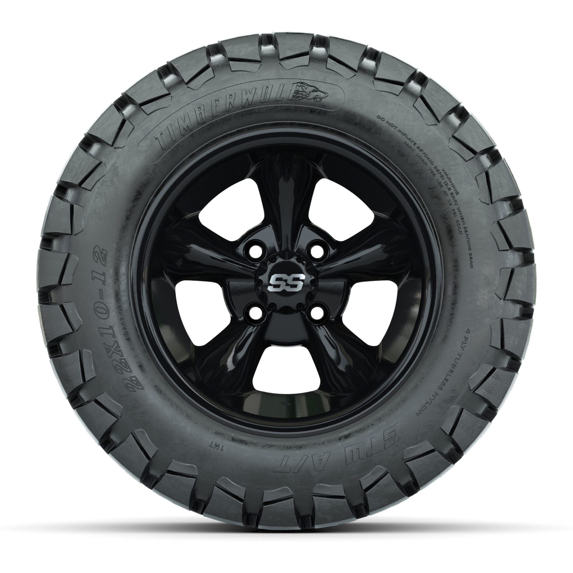 product Set of (4) 12 in GTW Godfather Wheels with 22x10-12 GTW Timberwolf All-Terrain TiresItem # A19-736Tread Classification:All Terrain / Off RoadFull kit includes:(4) 12" GTW Godfather Wheels / Black Finish / Offset: 3:4 (ET -.25)(4) 22x10-12 GTW Timberwolf All-Terrain Tires (4-Ply)(4) Center capsPlease Note: All Wheels are 4 on 4 Hole / Lug Pattern unless otherwise specified.Tech Tips:This Tire & Wheel Combo Does Require a Lift KitTire & Wheel Combos are mounted and Inflated Before Shipping, Free of ChargePlease Check and Adjust PSI in Tires Before Operation (Recommended Inflation Can Be Found on Sidewall of Tire)All Wheels Have a lug pattern of "4x101.6mm"Lug Nuts Sold Separately:Standard: #LUG4S (Standard Chrome Lug Nuts) Metric: #LUG4M (Yamaha Models) Find A Dealer