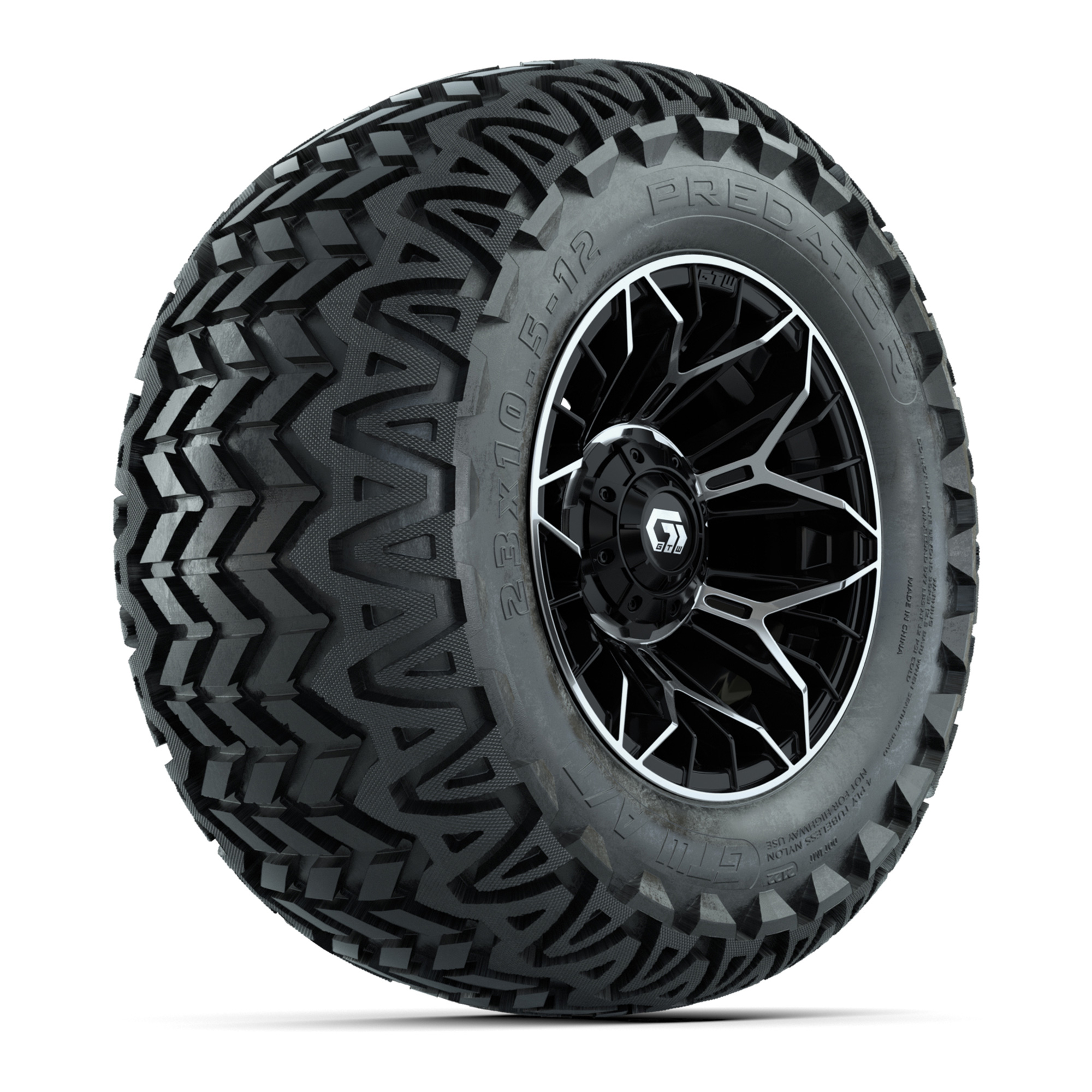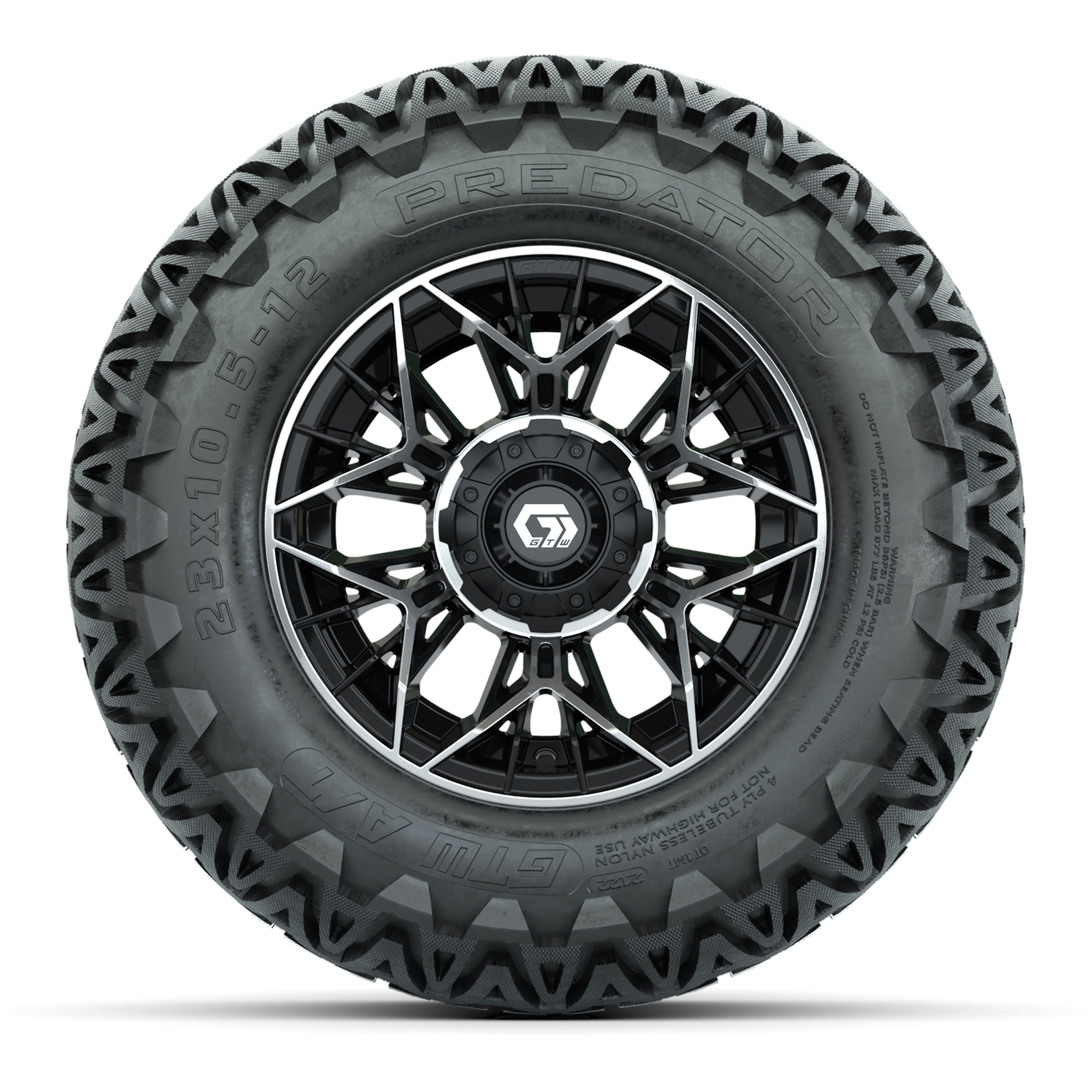 Set of (4) 12 in GTW® Stellar Machined & Black Wheels with 23x10.5-12 Predator All-Terrain Tires