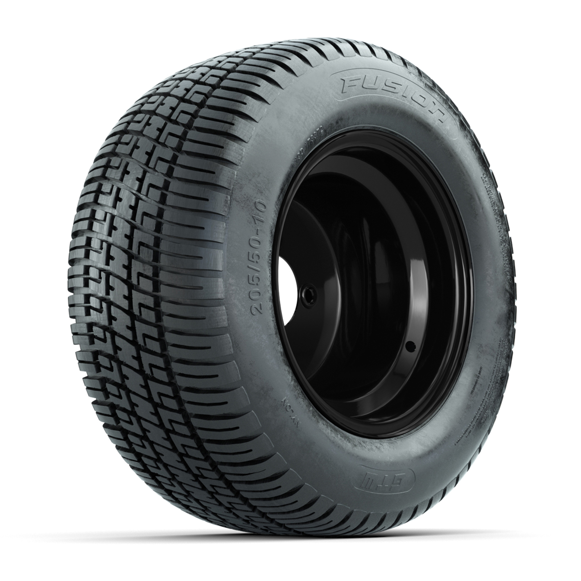 Set of (4) 10 in Matte Black Steel Offset Wheels with 205/50-10 Fusion Street Tires