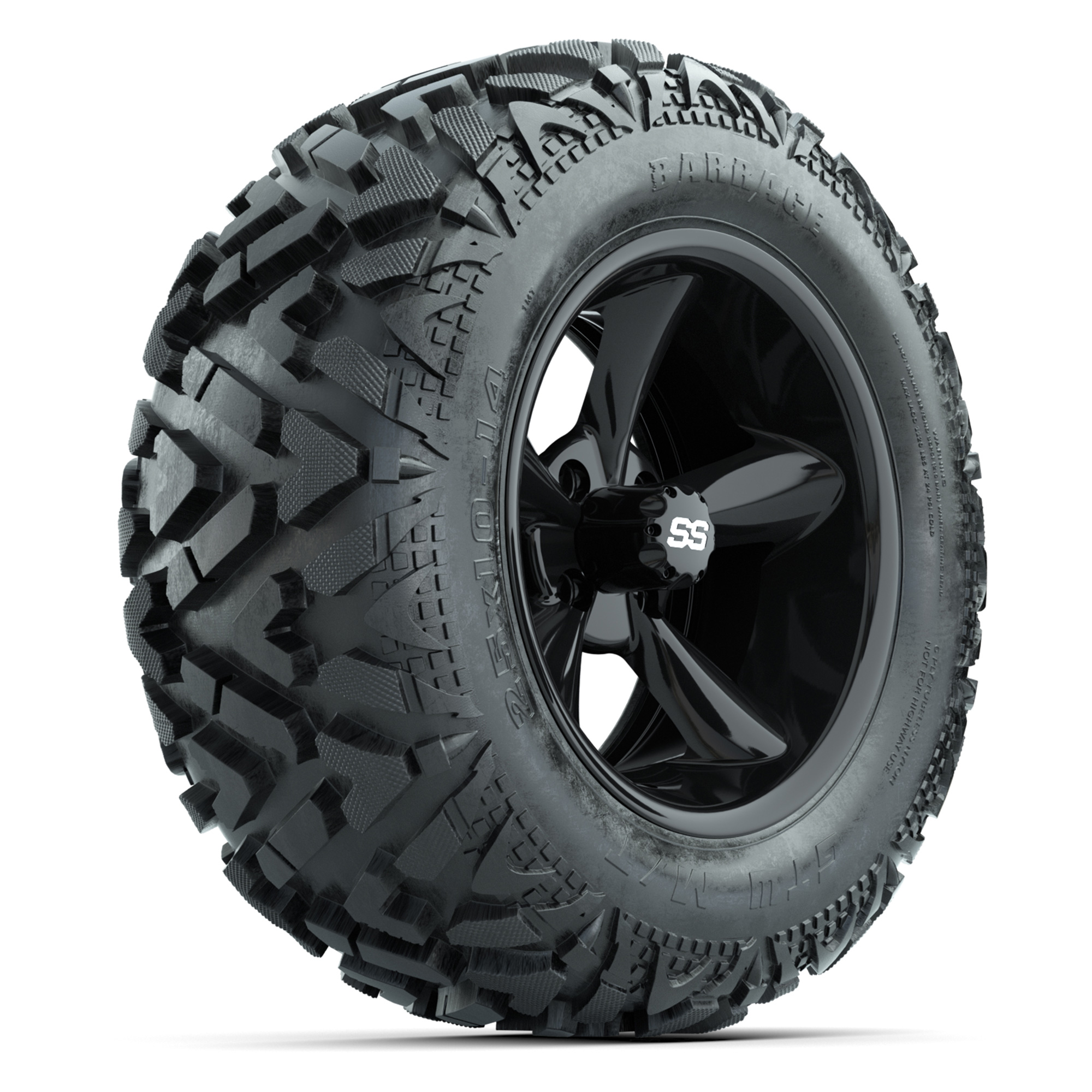 GTW Diablo Gloss Black/Machined 14 in Wheels with 25x10-14 Barrage Mud Tires – Full Set