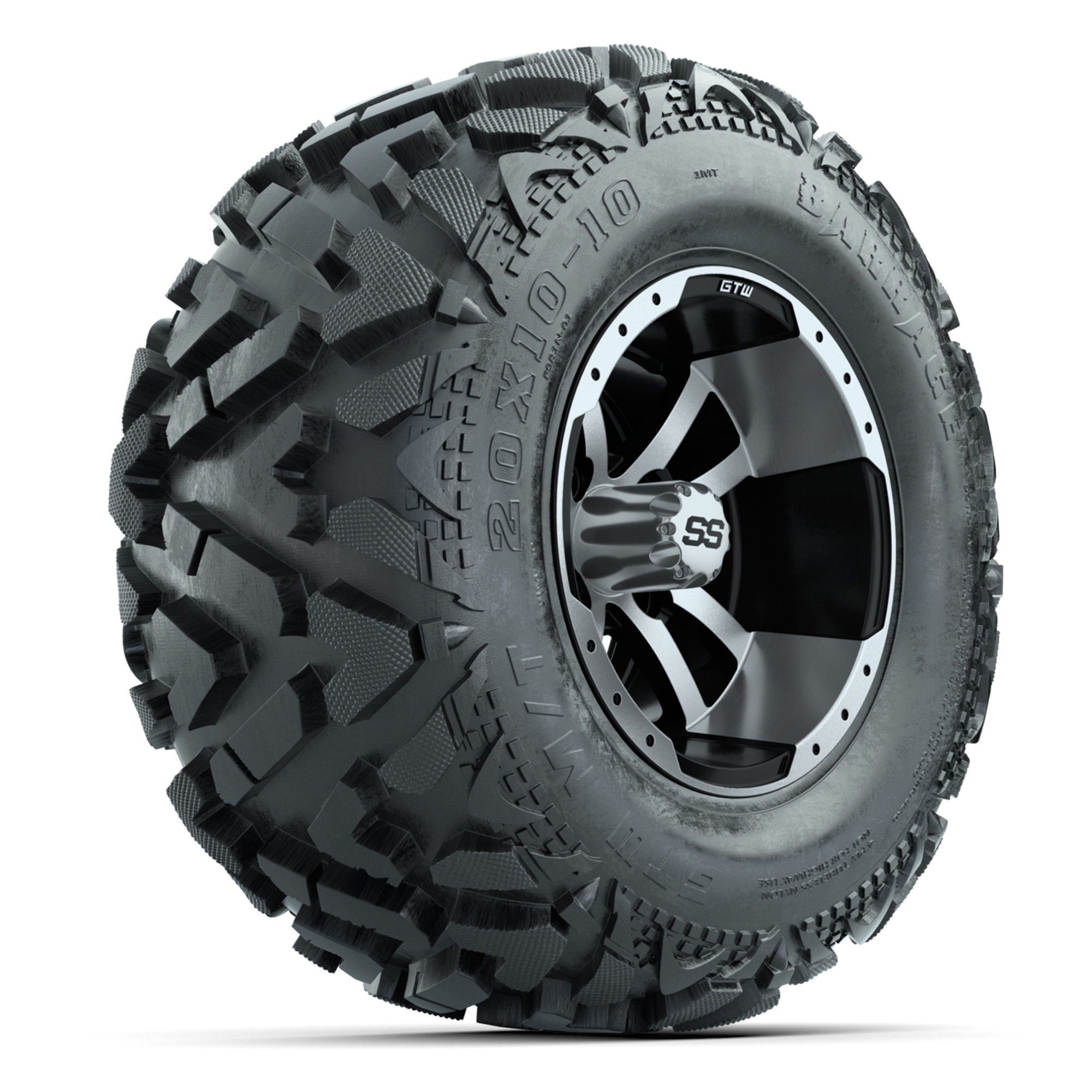 GTW Storm Trooper Black/Machined 10 in Wheels with 20x10-10 Barrage Mud Tires – Full Set