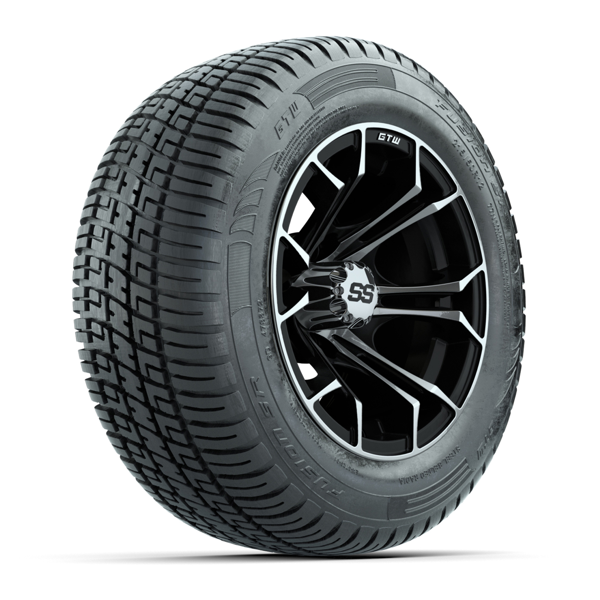 GTW Spyder Machined/Black 12 in Wheels with 215/50-R12 Fusion S/R Street Tires – Full Set