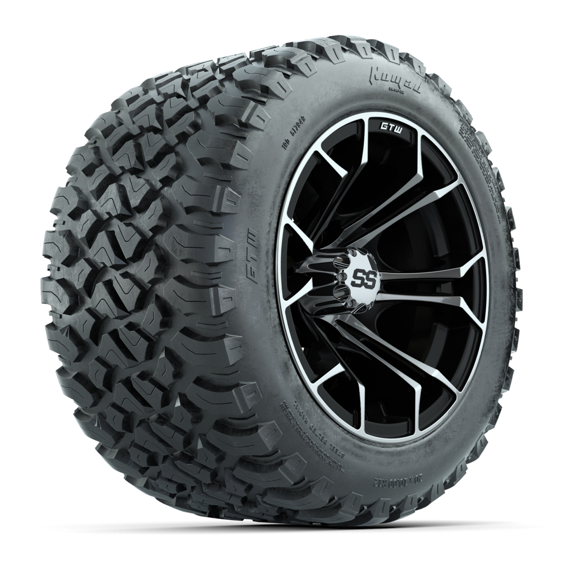 GTW Spyder Machined/Black 14 in Wheels with 22x10-14 GTW Timberwolf All-Terrain Tires – Full Set