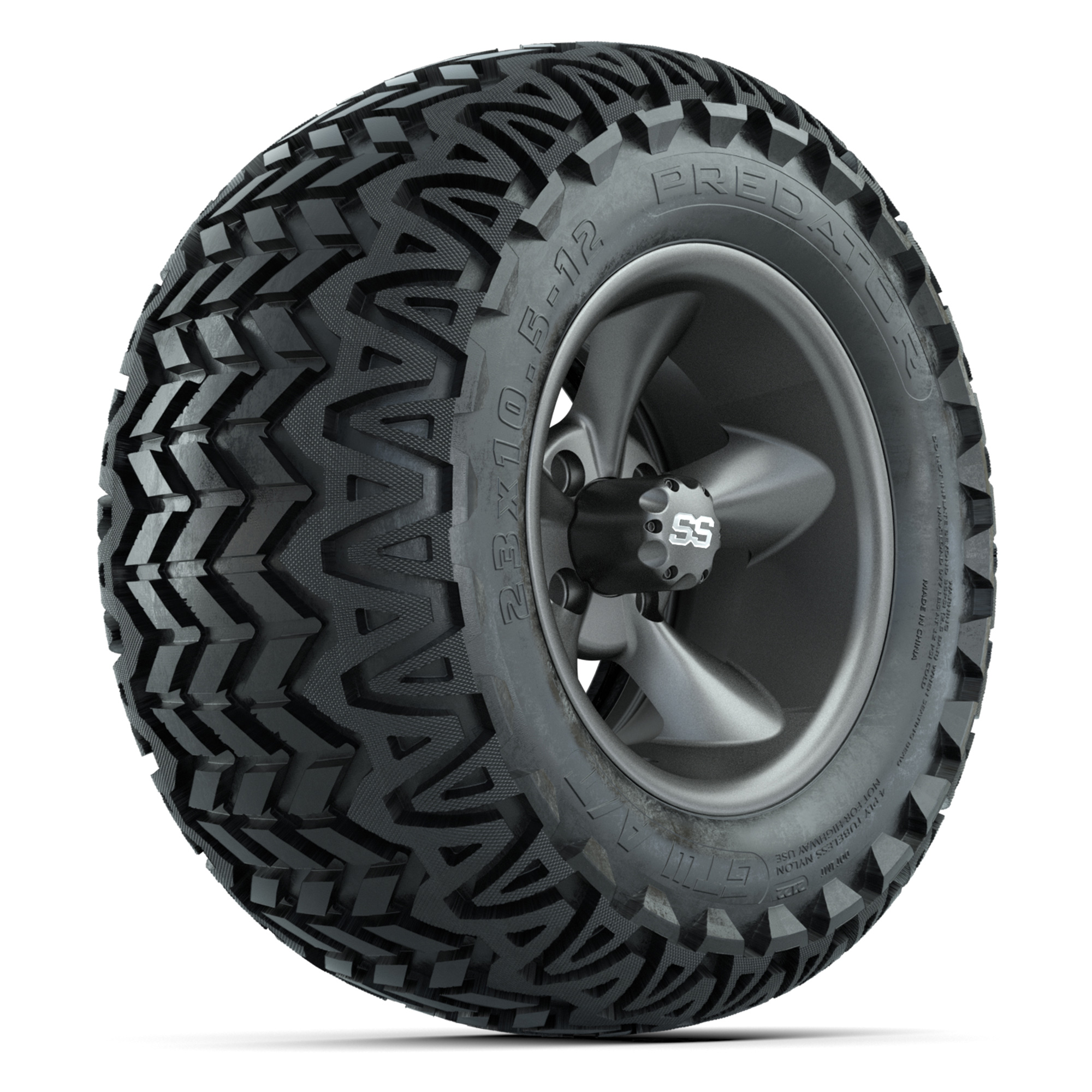GTW® Godfather Matte Gray 12 in Wheels with 23X10.5-12 Predator All-Terrain Tires – Full Set