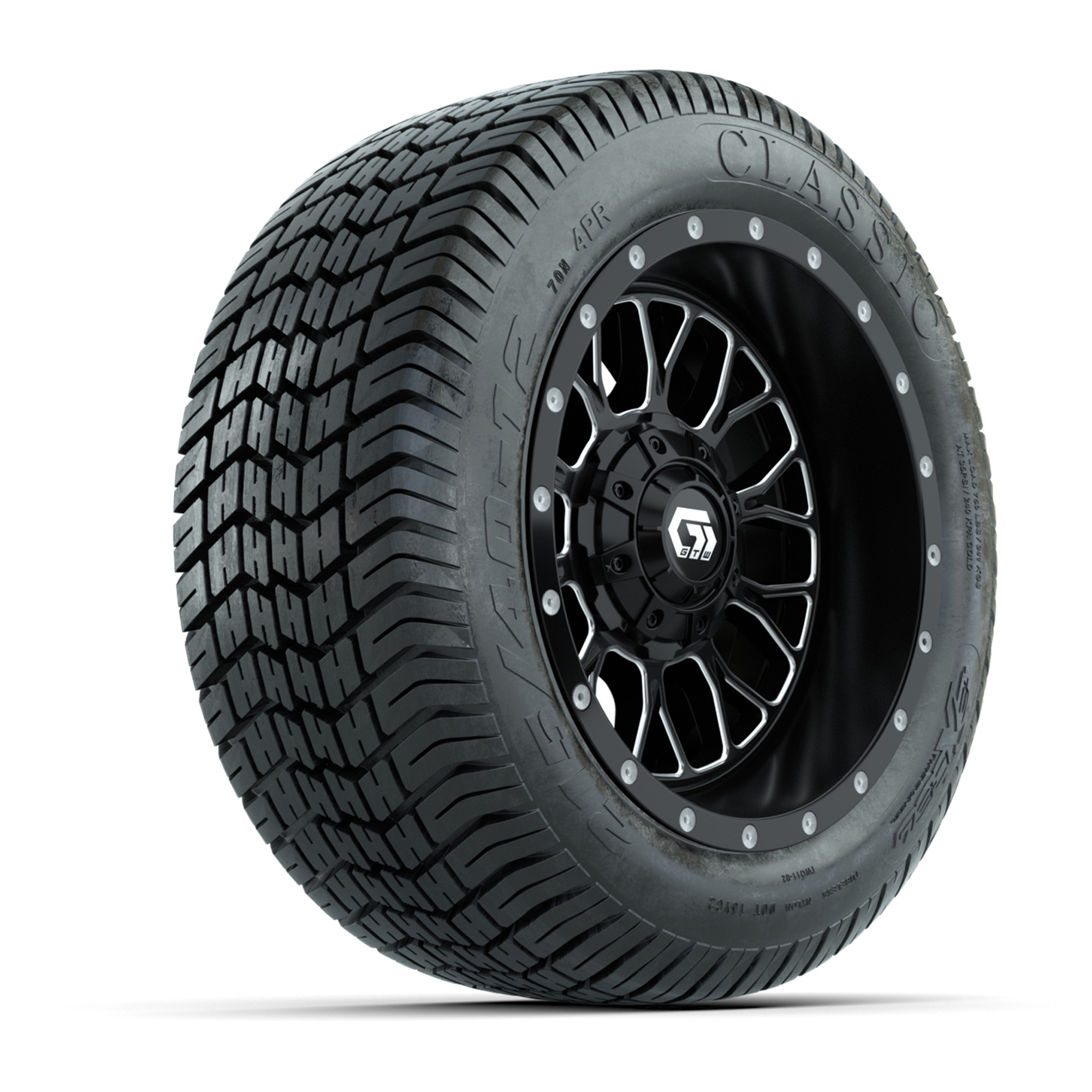 GTW® Helix Black/Machined 12 in Wheels with 255/50-12 Excel Classic Street Tires – Full Set