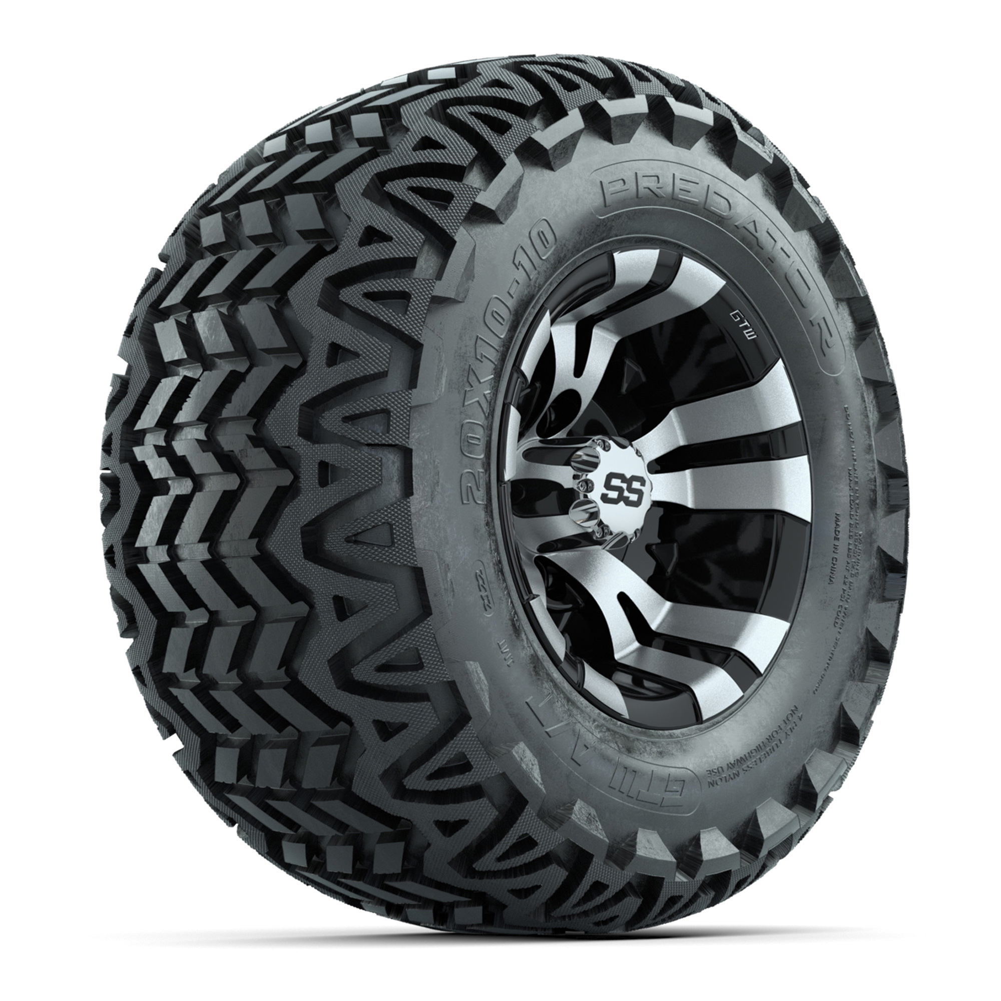 GTW Vampire Black and Machined Wheels with 20in Predator A-T Tires - 10 Inch