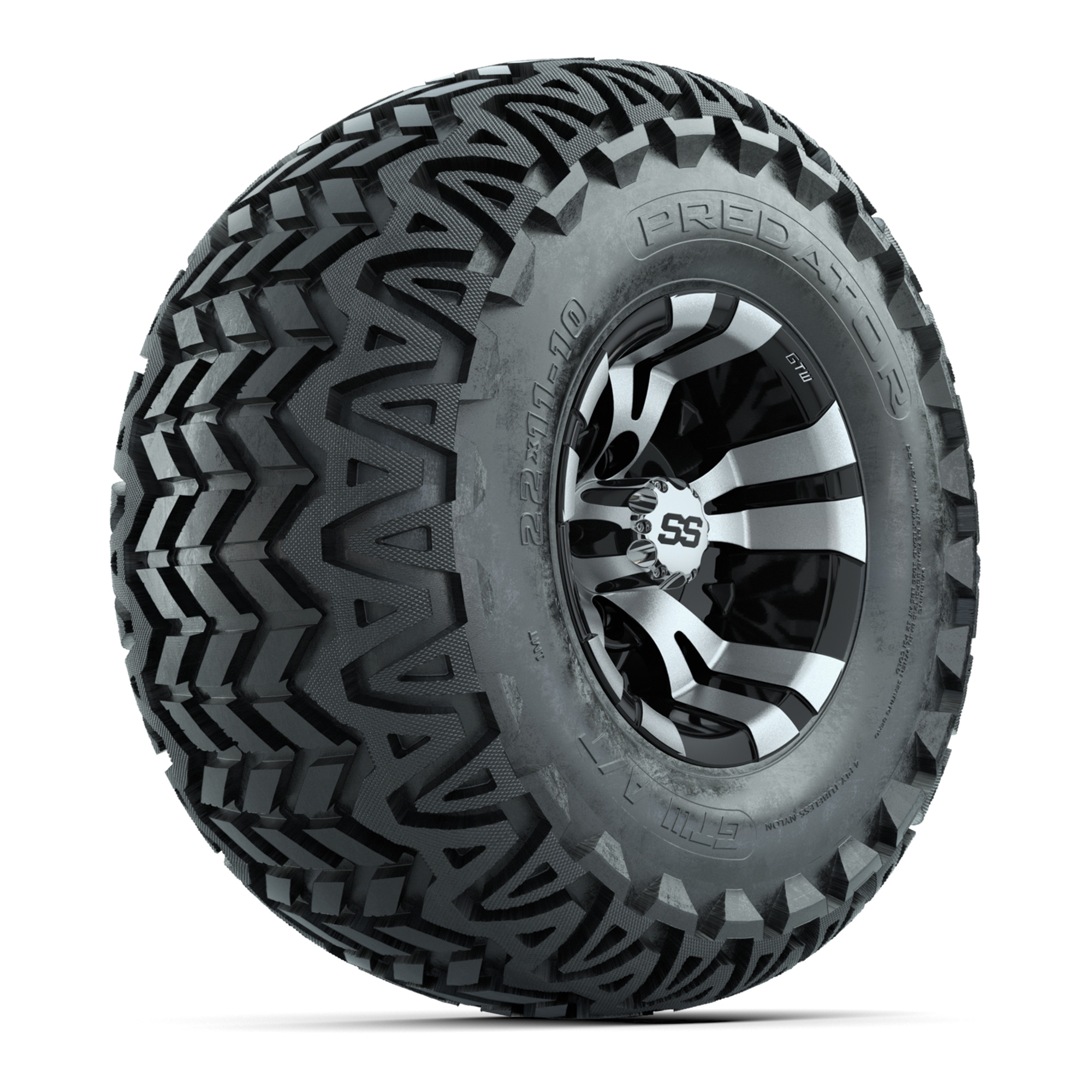 GTW Vampire Black and Machined Wheels with 22in Predator A-T Tires - 10 Inch