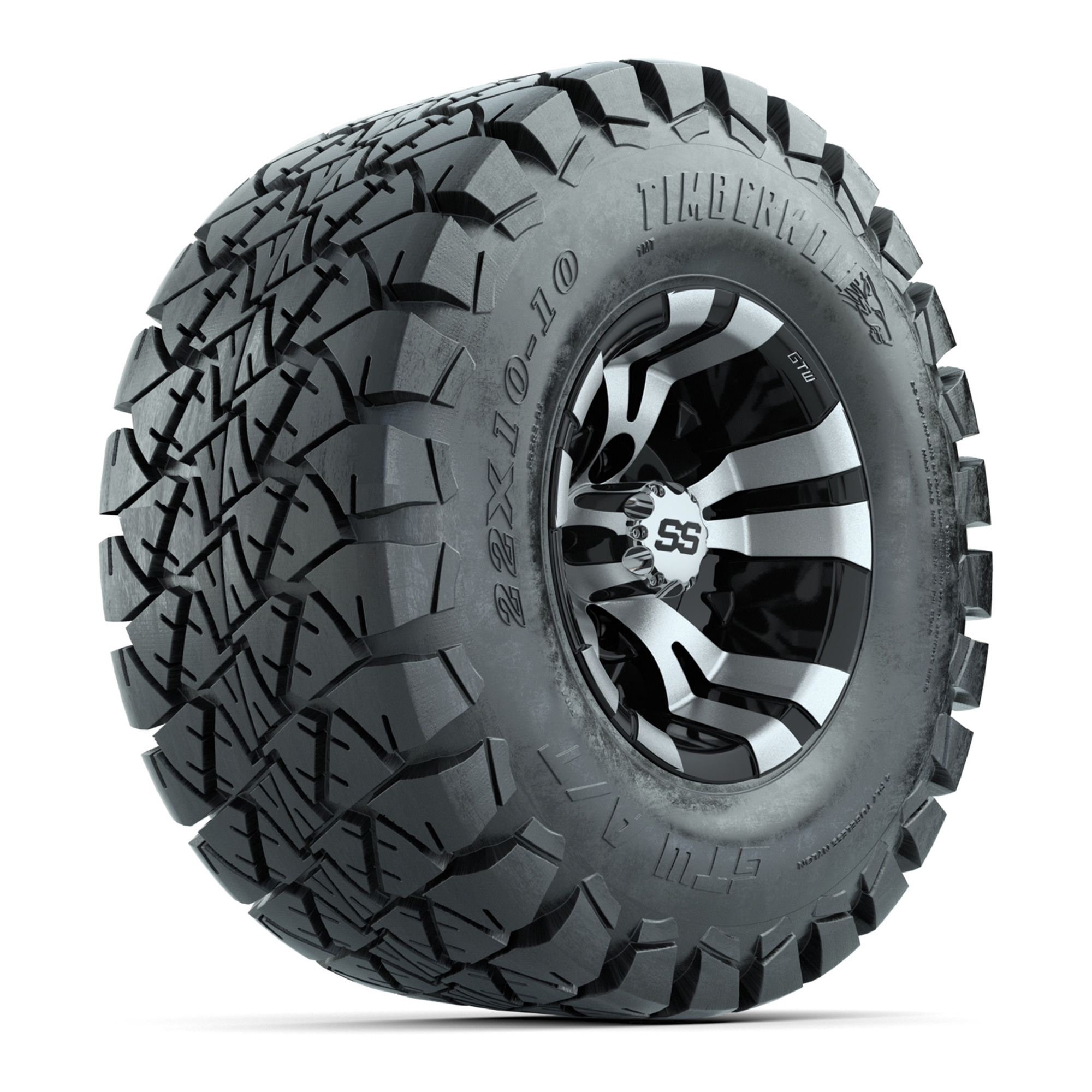 GTW Vampire Black and Machined Wheels with 22in Timberwolf Mud Tires - 10 Inch