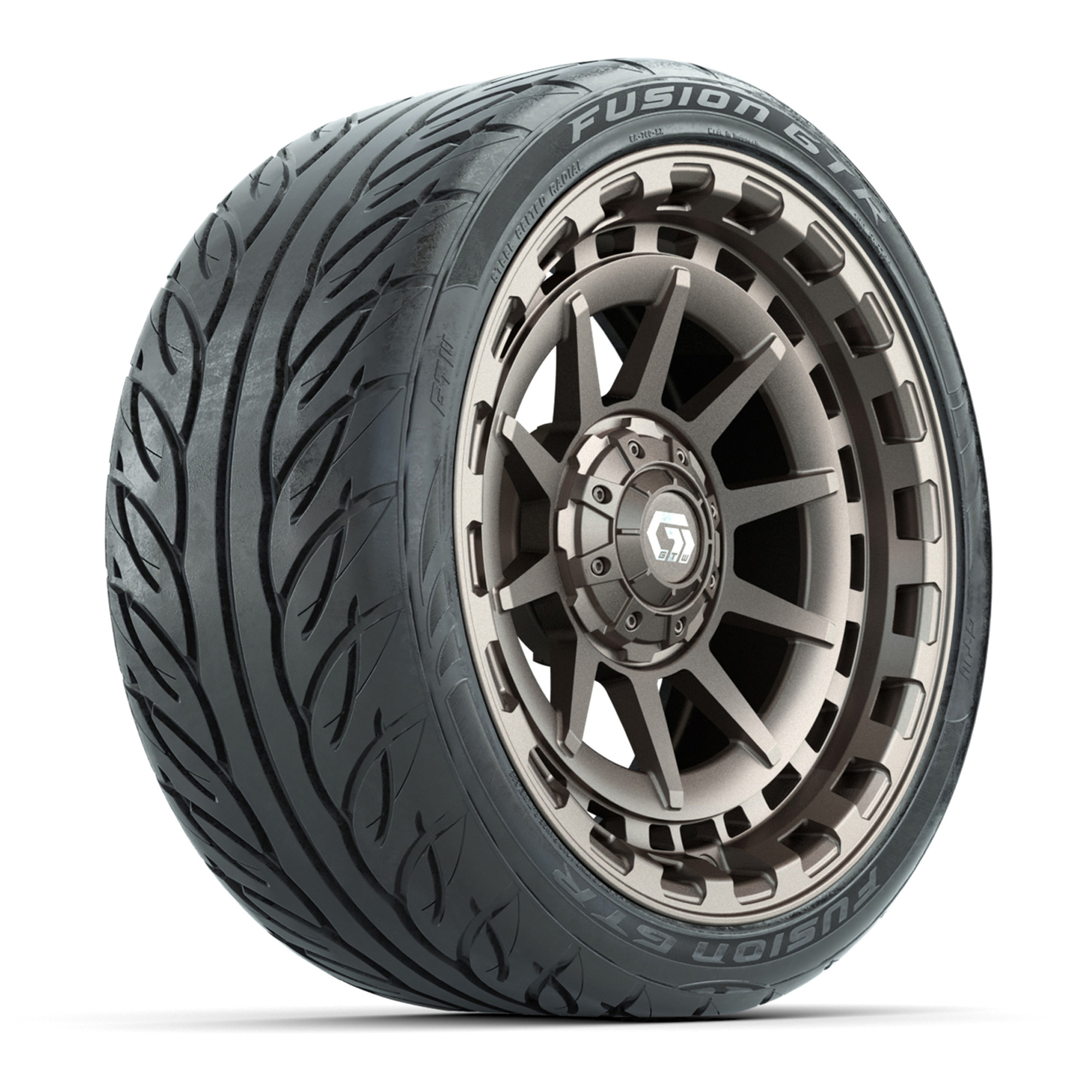 GTW® Barricade Satin Bronze 15 in Wheels with 215/40-R15 Fusion GTR Steel Belted Street Tires – Full Set
