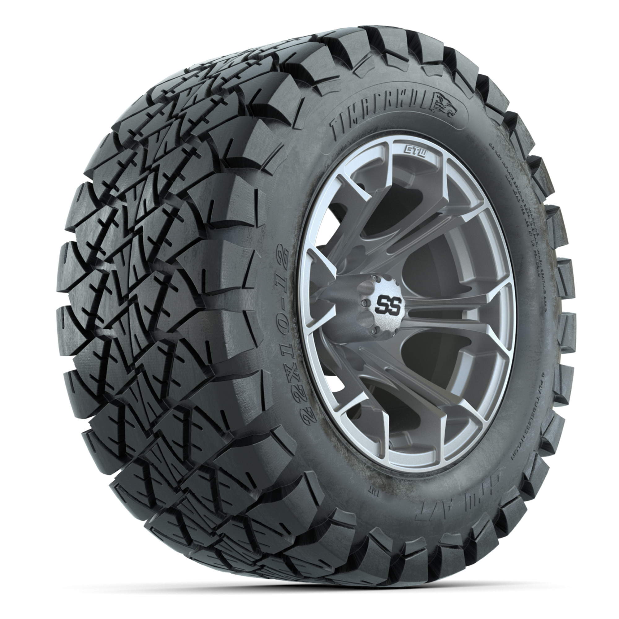 GTW® Spyder Silver Brush 12 in Wheels with 22X10-12 Timberwolf All-Terrain Tires – Full Set